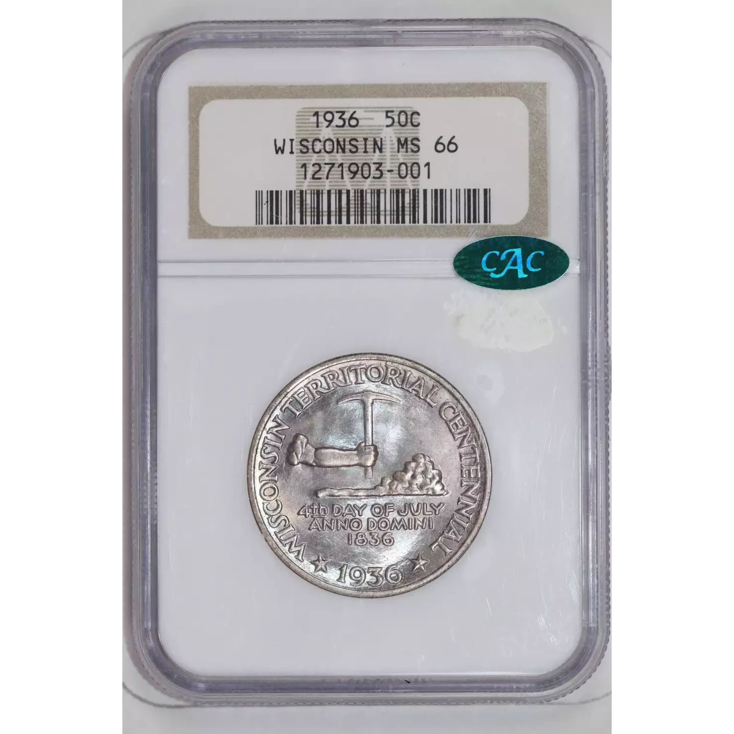 1936 WISCONSIN SILVER COMMEMORATIVE HALF DOLLAR NGC MS66 ORIGINAL PQ! CAC