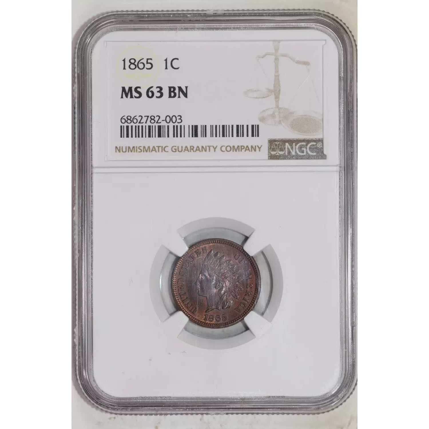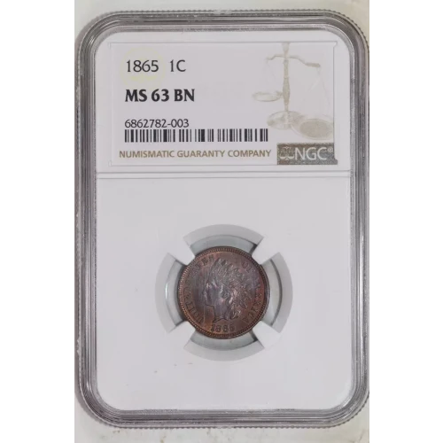 1865 Small Cents Indian Head NGC MS-63 BN