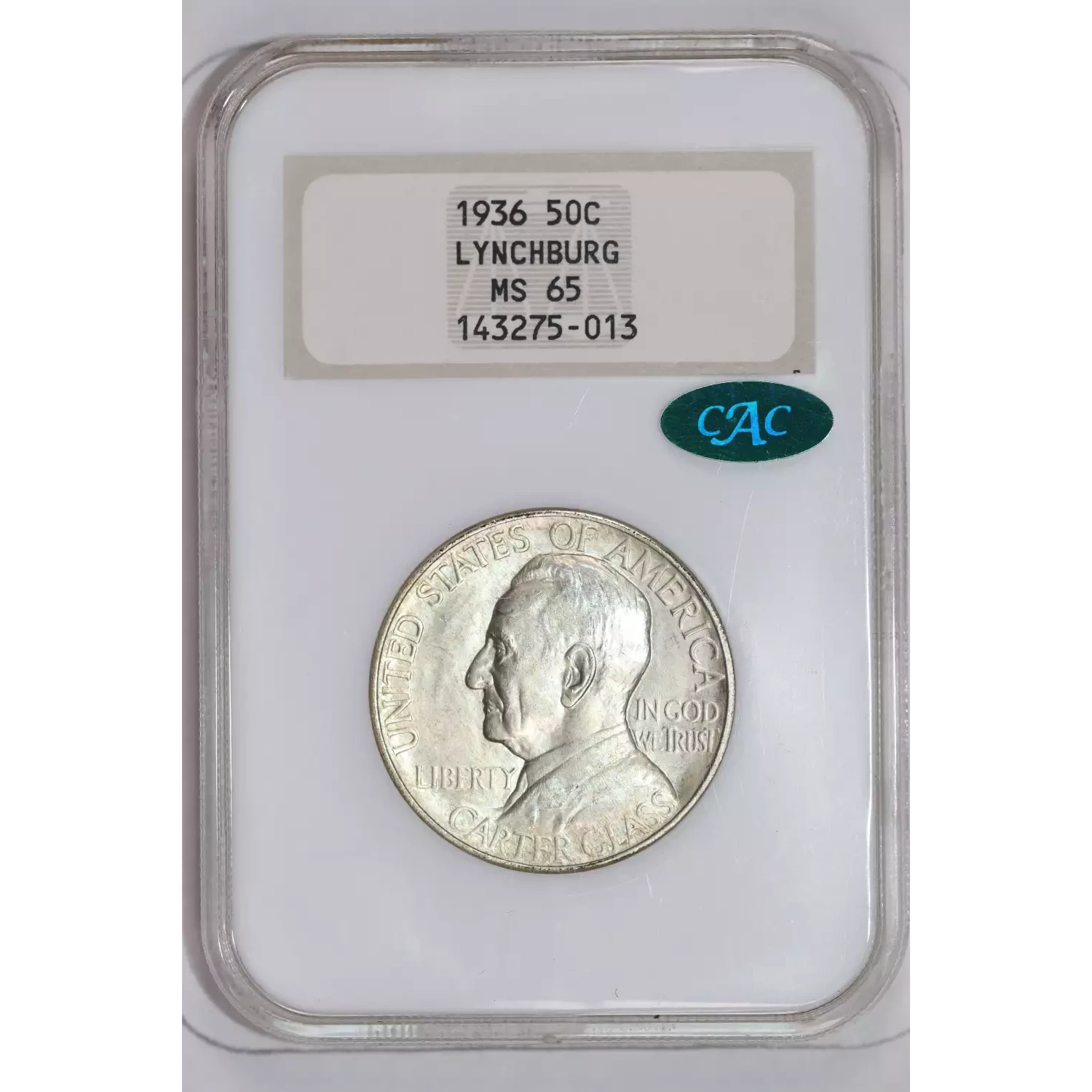 1936 LYNCHBURG SILVER COMMEMORATIVE HALF DOLLAR NGC MS65 OLD FATTY HOLDER! VERY PQ! CAC