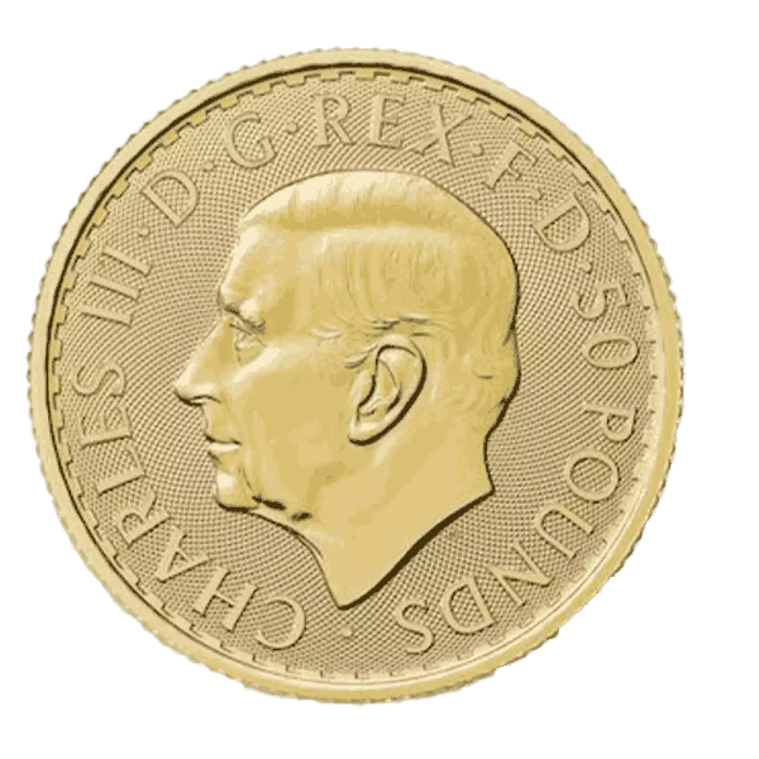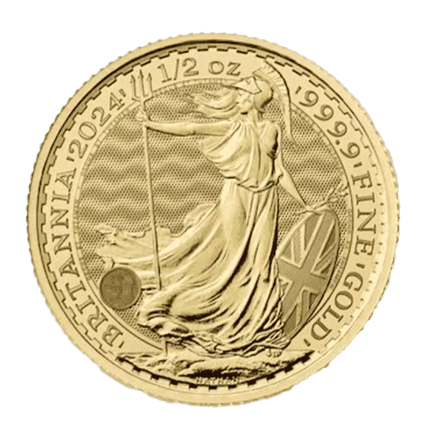 The Royal Mint proudly presents the annual Britannia Gold Bullion Coins, featuring the legendary Britannia—a symbol of ancient warrior queen who defended Great Britain's shores against invasion and tyranny. These stunning gold bullion coins are available in various weights and denominations, and now, you can secure the 2024 edition, a £50 Gold Britannia, meticulously minted with half an ounce of 99.99% pure gold, ready to take its place as a standout piece in your collection!
