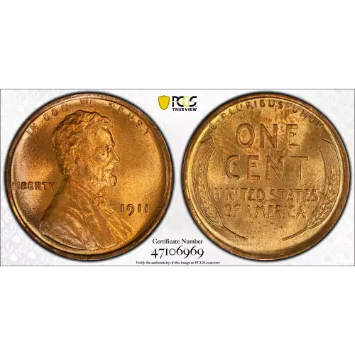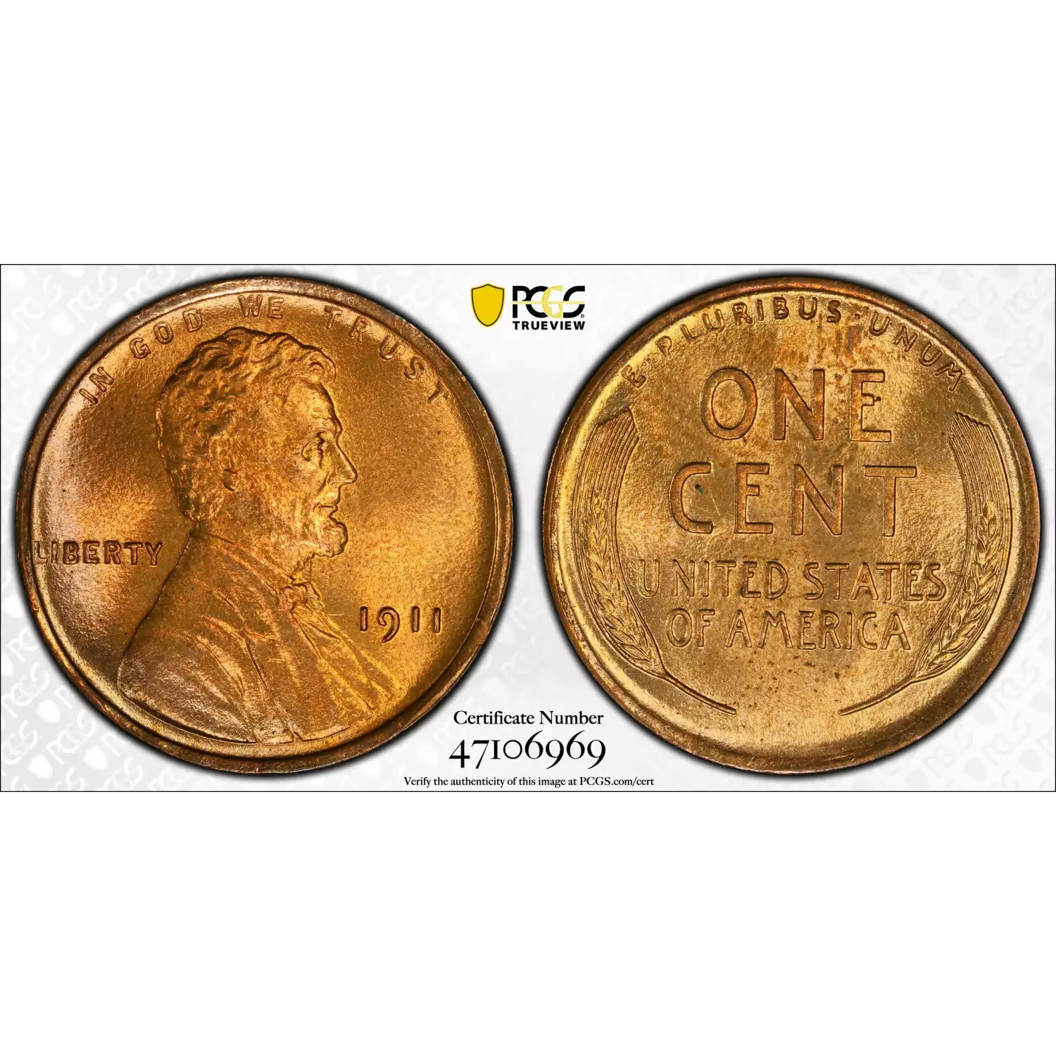 1911 Small Cents Lincoln, Wheat Ears Reverse PCGS MS-65 RD CAC