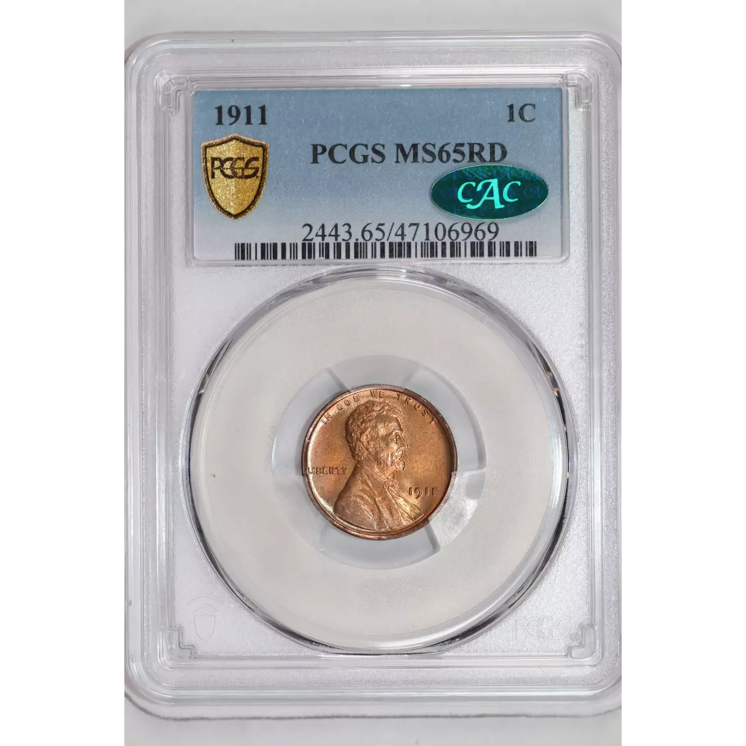 1911 LINCOLN WHEAT CENT PCGS MS65 RD CAC - VERY PQ!