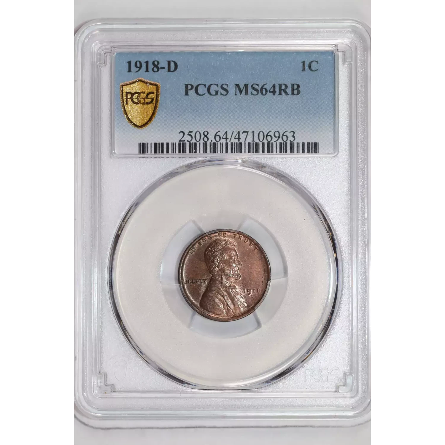 1918-D LINCOLN WHEAT CENT PCGS MS64 RB