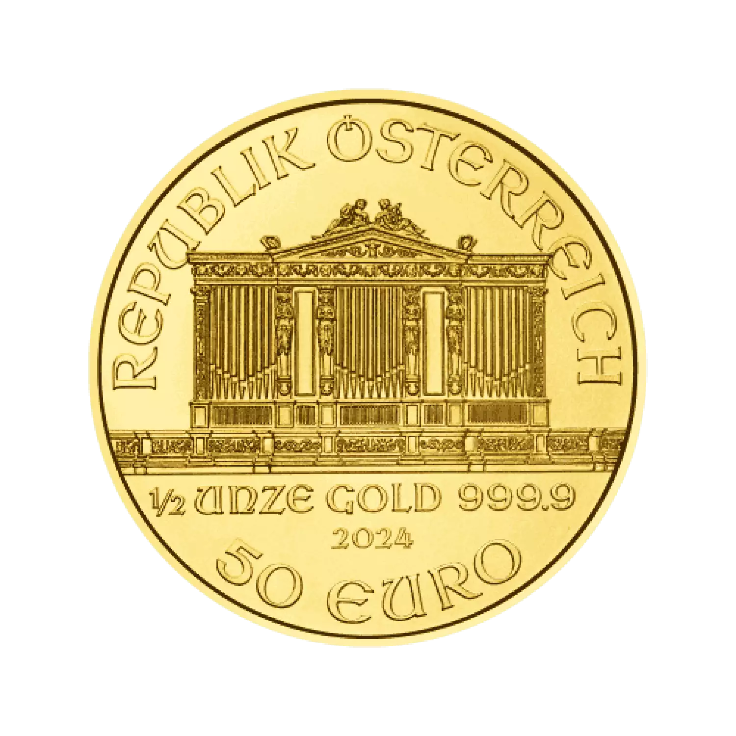 Secure your 1/2 oz 2024 Austrian Philharmonic Gold Coin and embrace the world of bullion today!