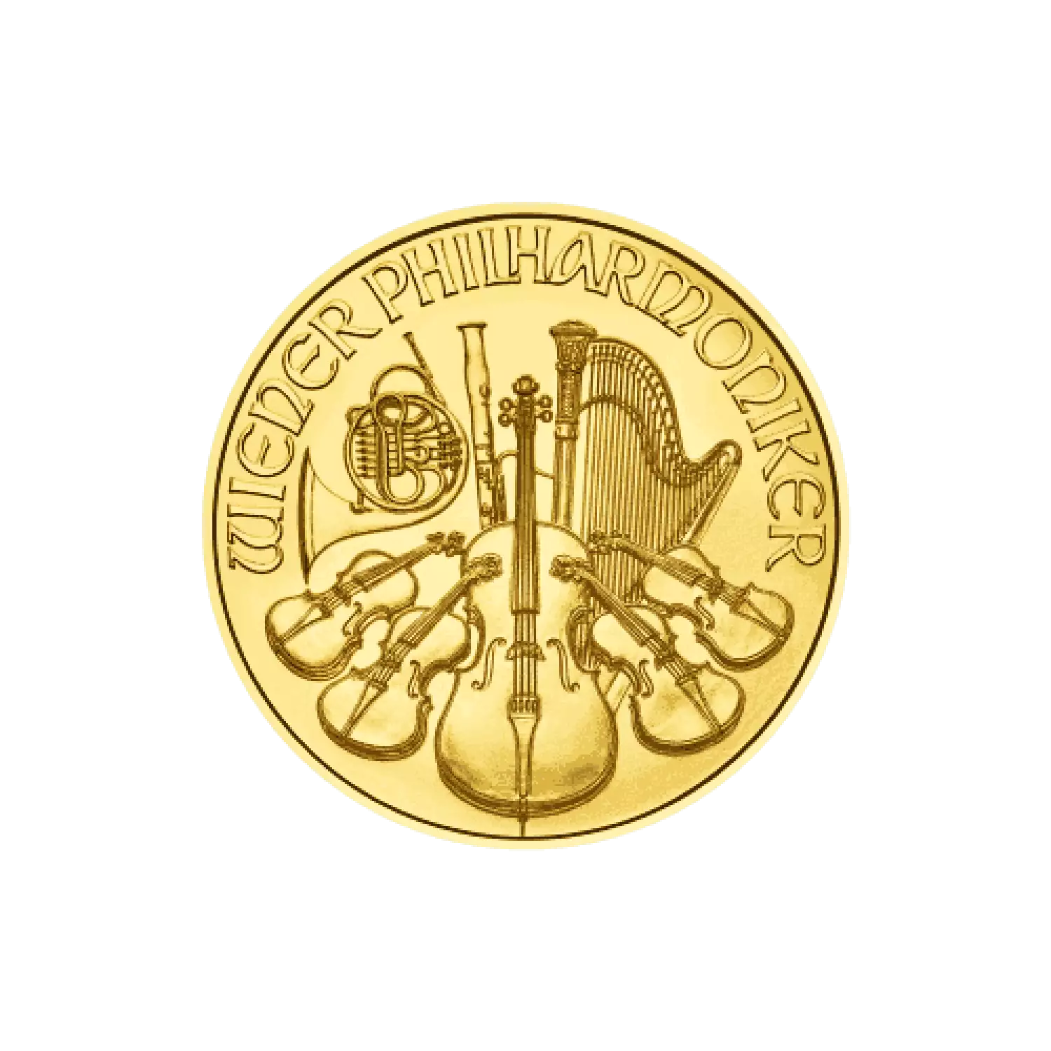 Introduced in 1989 by the Austrian Mint, the 2024 1/4 oz Austrian Gold Philharmonic coin is an excellent choice for music-loving investors. This coin contains 0.25 oz of gold, and its reverse side showcases a variety of musical instruments.