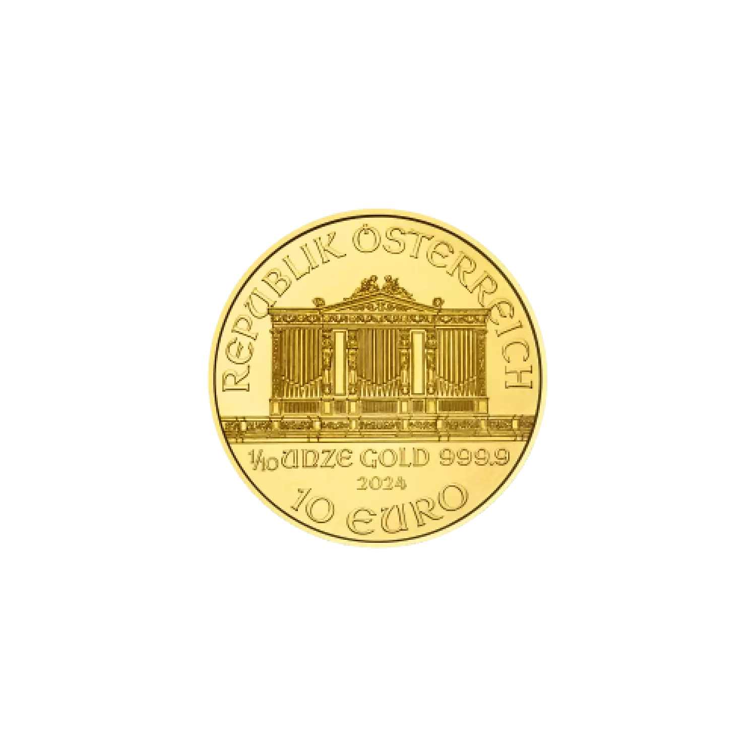 If you're contemplating the purchase of gold coins from a reputable bullion dealer, seize the opportunity to buy the high-quality 2024 1/10 oz Austrian Gold Philharmonic online today! You can find the current gold coin prices on our website.