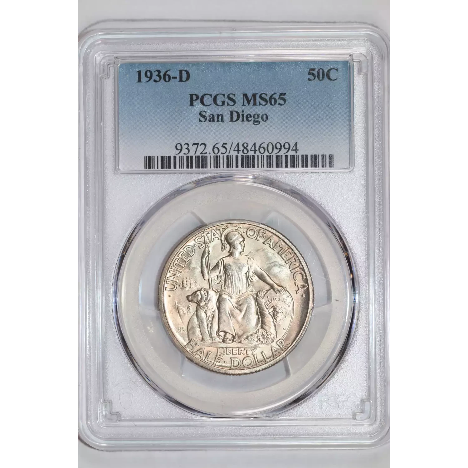 1936-D SAN DIEGO SILVER COMMEMORATIVE HALF DOLLAR PCGS MS65