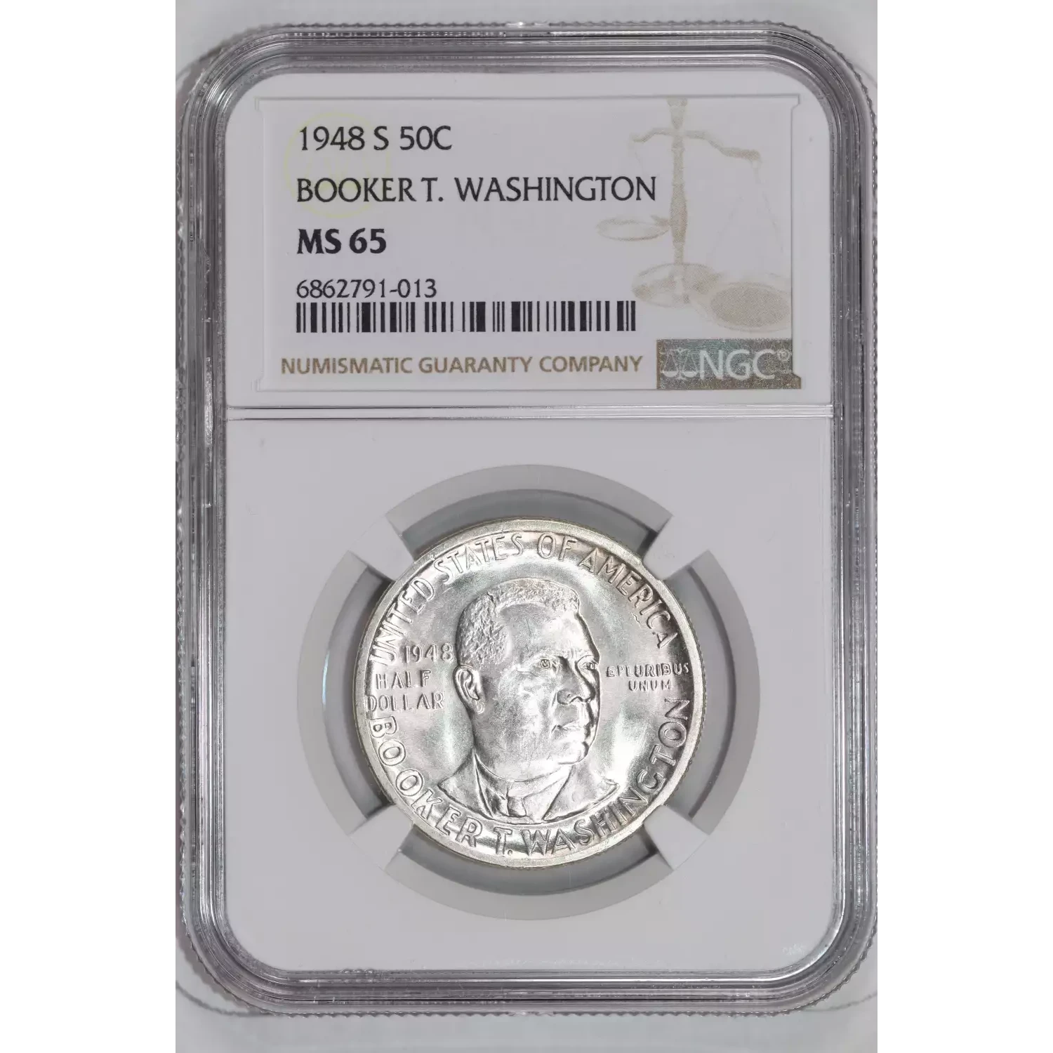 1948-S BOOKER T WASHINGTON SILVER COMMEMORATIVE HALF DOLLAR NGC MS65