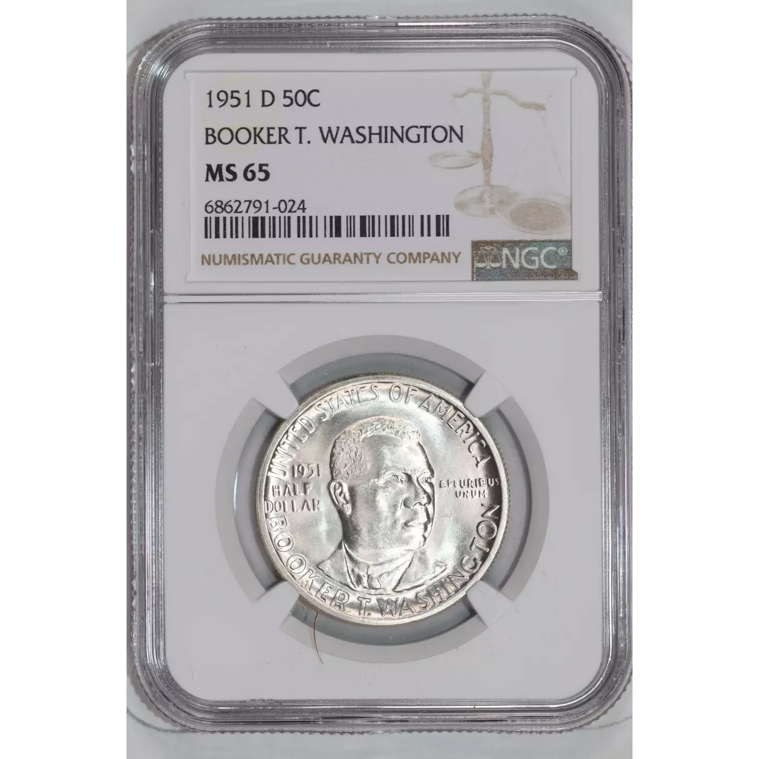 1951-D BOOKER T WASHINGTON SILVER COMMEMORATIVE HALF DOLLAR NGC MS65