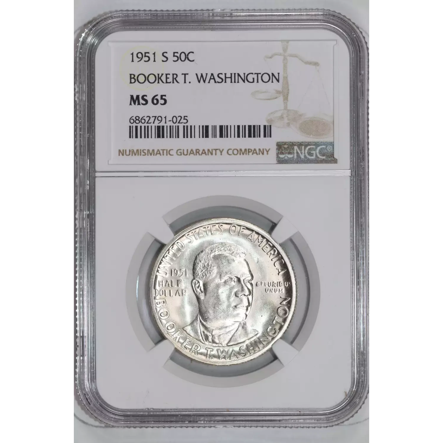 1951-S BOOKER T WASHINGTON SILVER COMMEMORATIVE HALF DOLLAR NGC MS65
