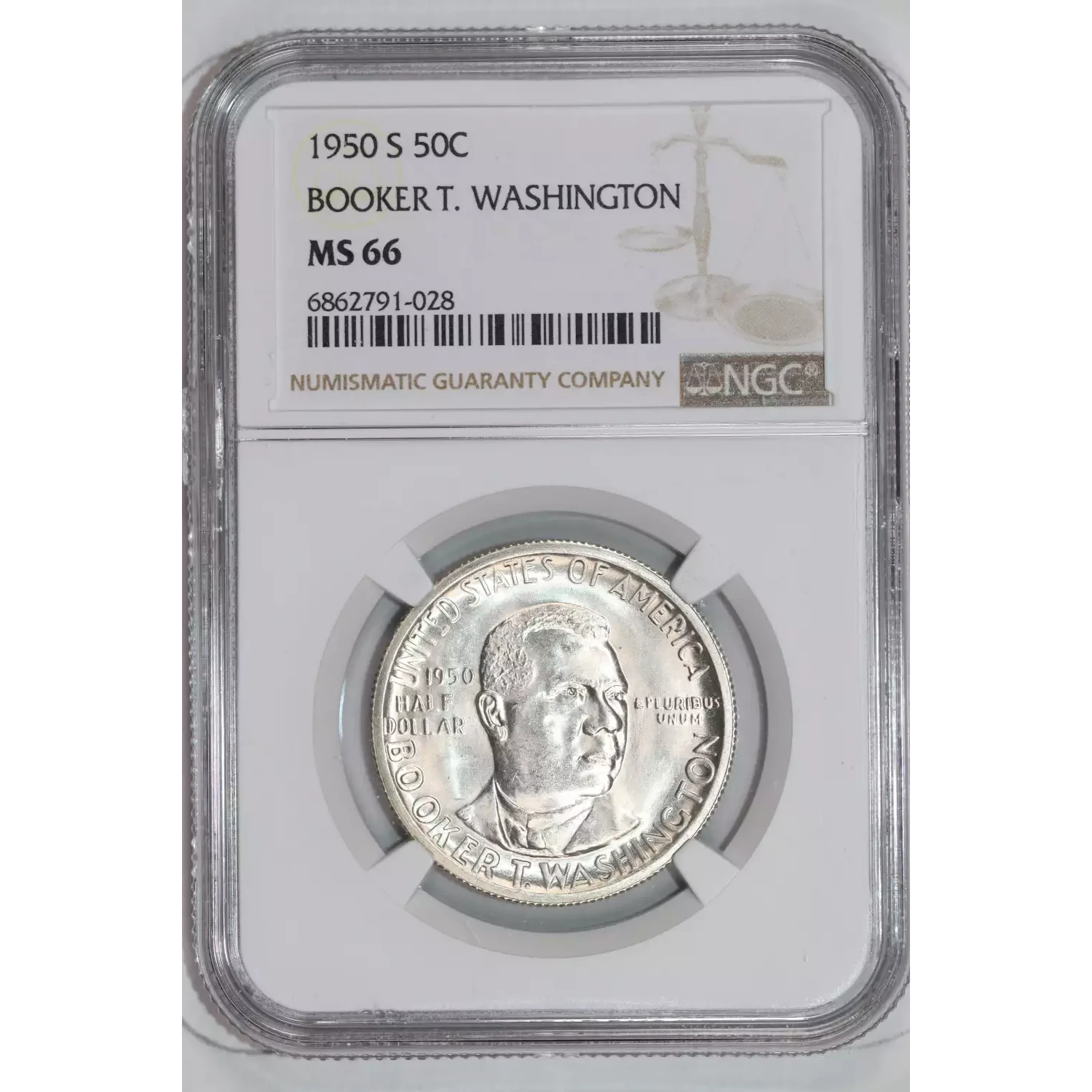 1950-S BOOKER T WASHINGTON SILVER COMMEMORATIVE HALF DOLLAR NGC MS66