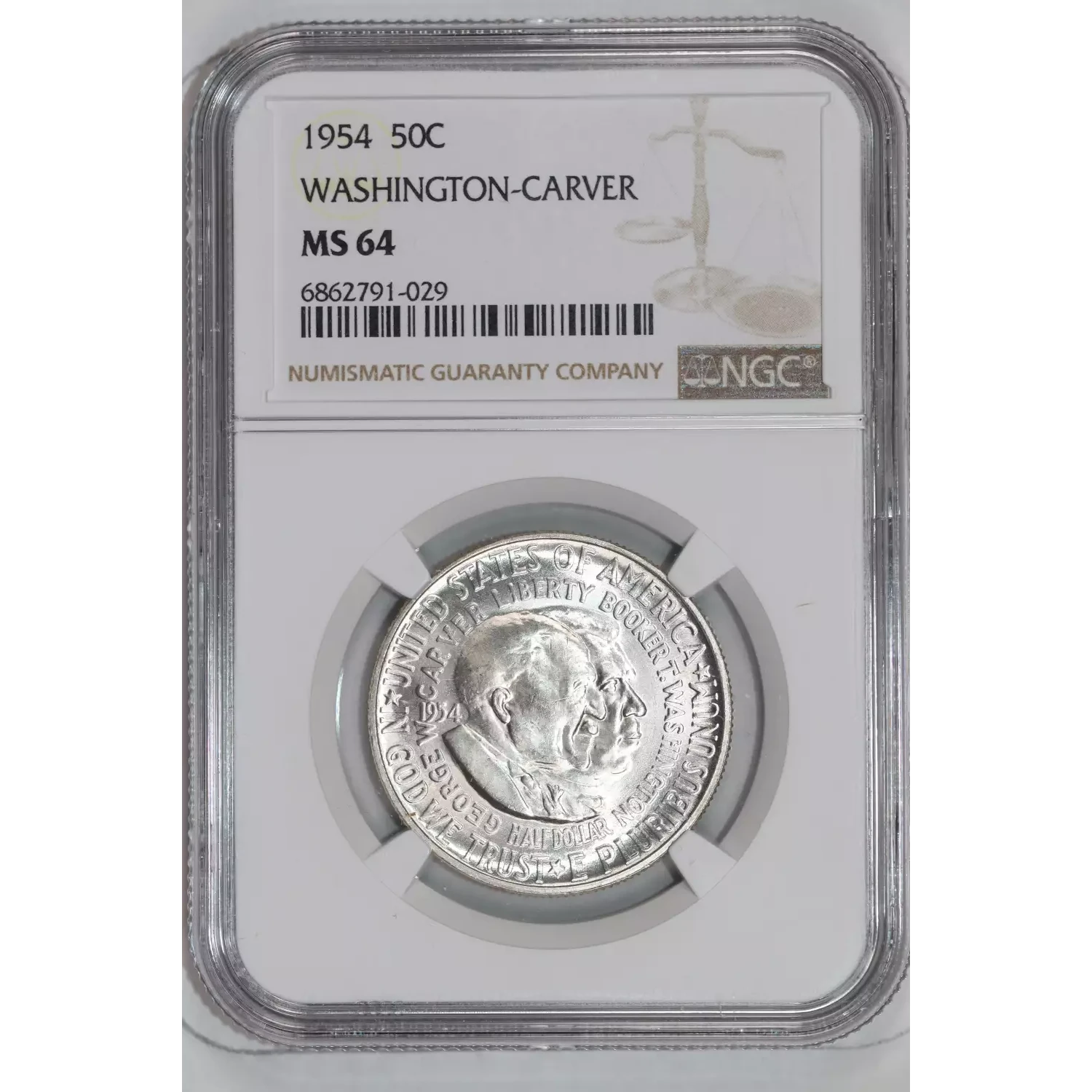 1954 WASHINGTON/CARVER SILVER COMMEMORATIVE HALF DOLLAR NGC MS64