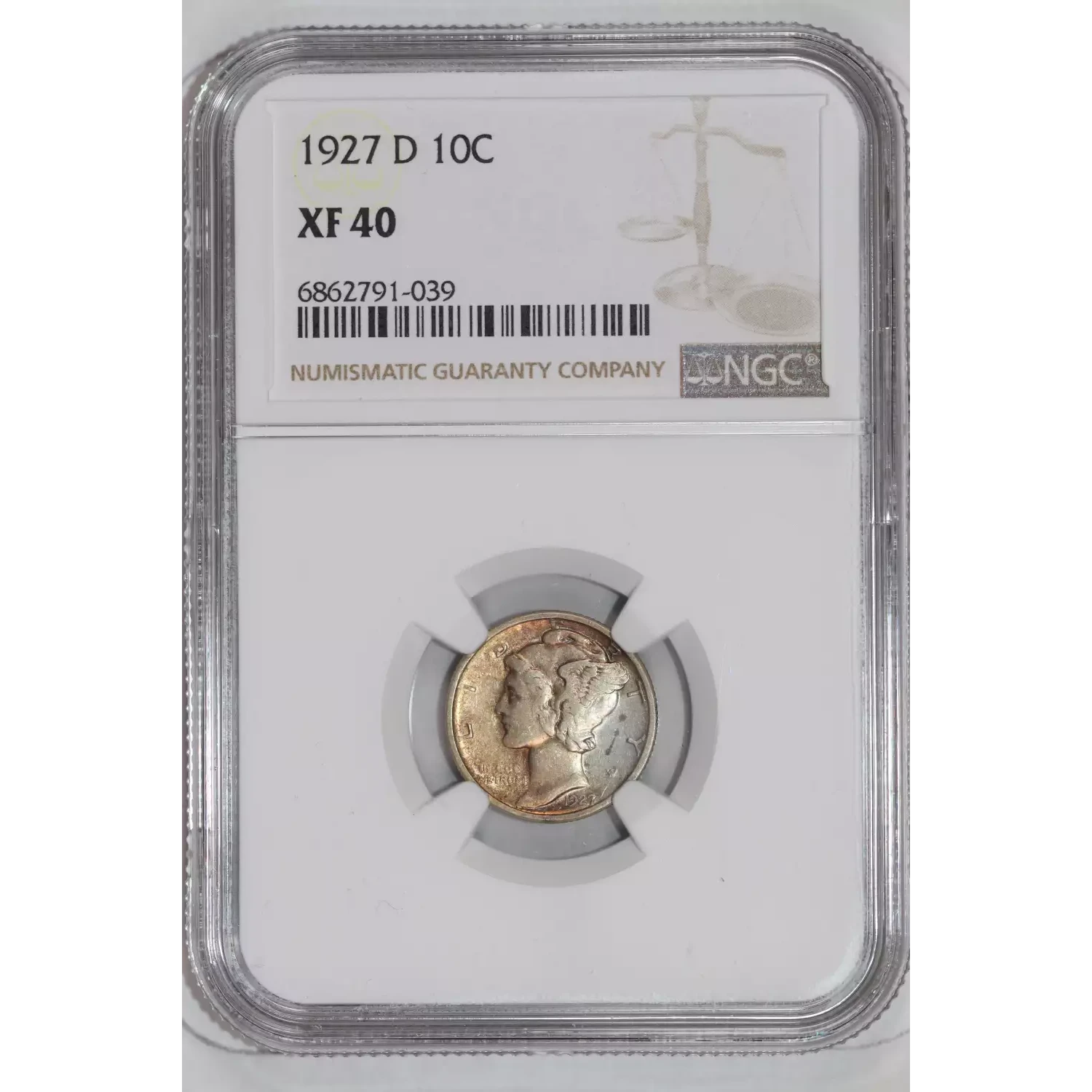 1927-D MERCURY DIME NGC XF40