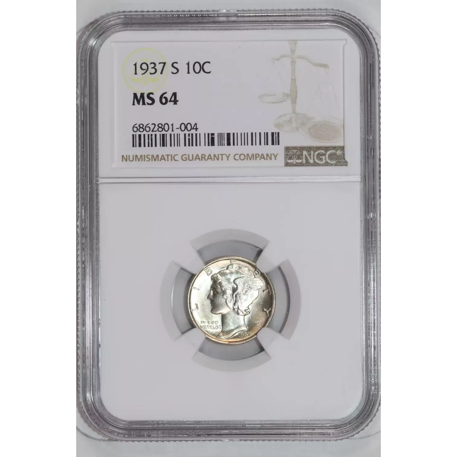 1937-S Dimes Winged Liberty Head or Mercury NGC MS-64