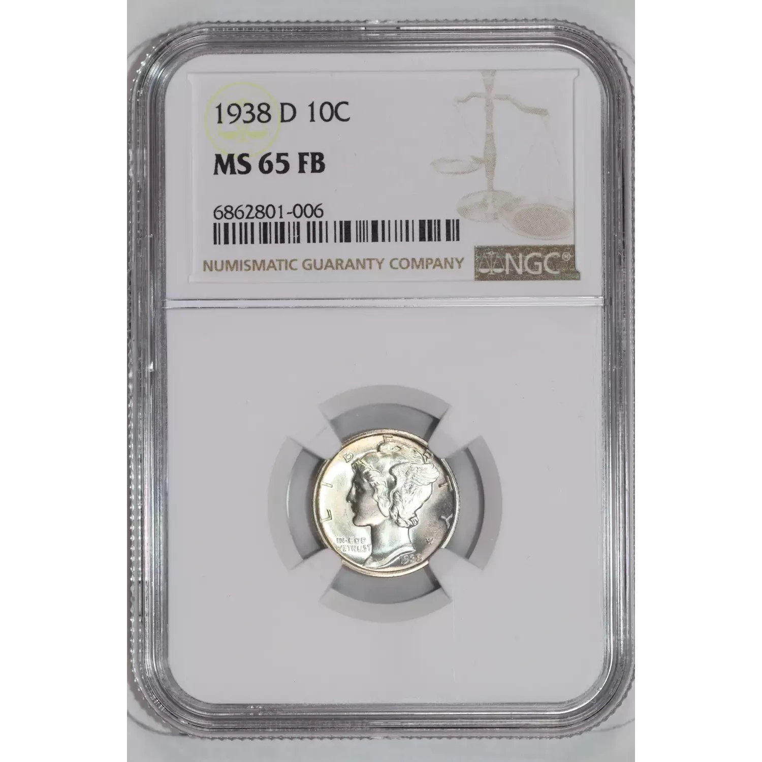 1938-D Dimes Winged Liberty Head or Mercury NGC MS-65 FB