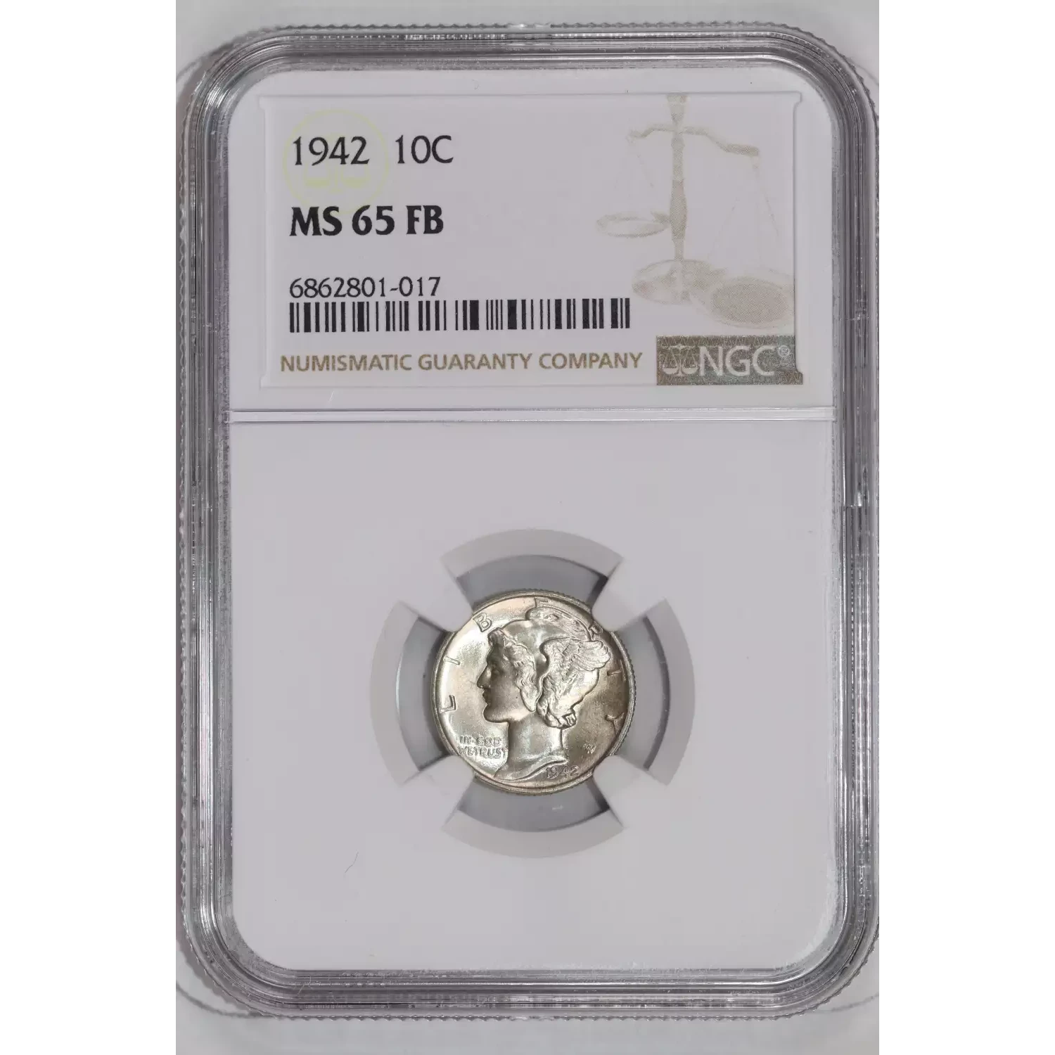 1942 Dimes Winged Liberty Head or Mercury NGC MS-65 FB