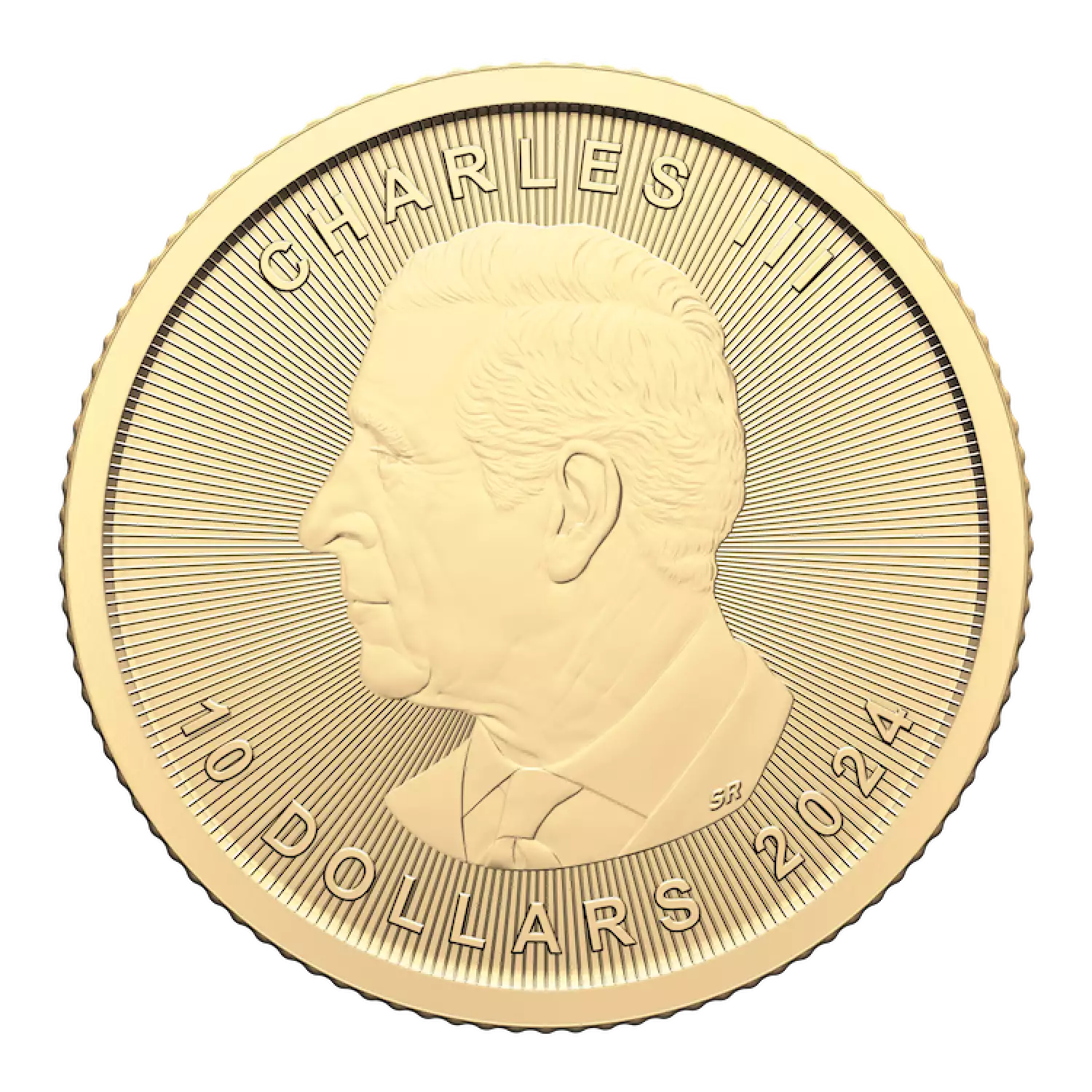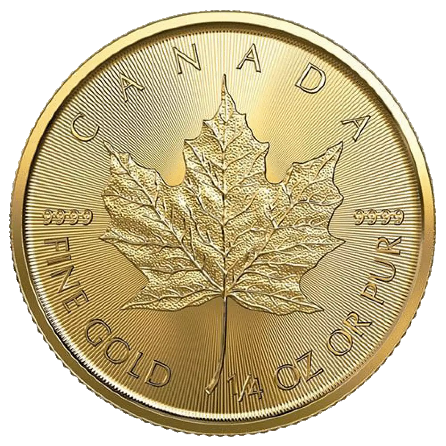 The 2024 1/4 oz Canadian Gold Maple Leaf coin contains 1/4 oz of .9999 fine Gold. The weight and purity of this coin is guaranteed by the Royal Canadian Mint. These 2024 maple leaf gold coins are highly popular among investors and collectors.