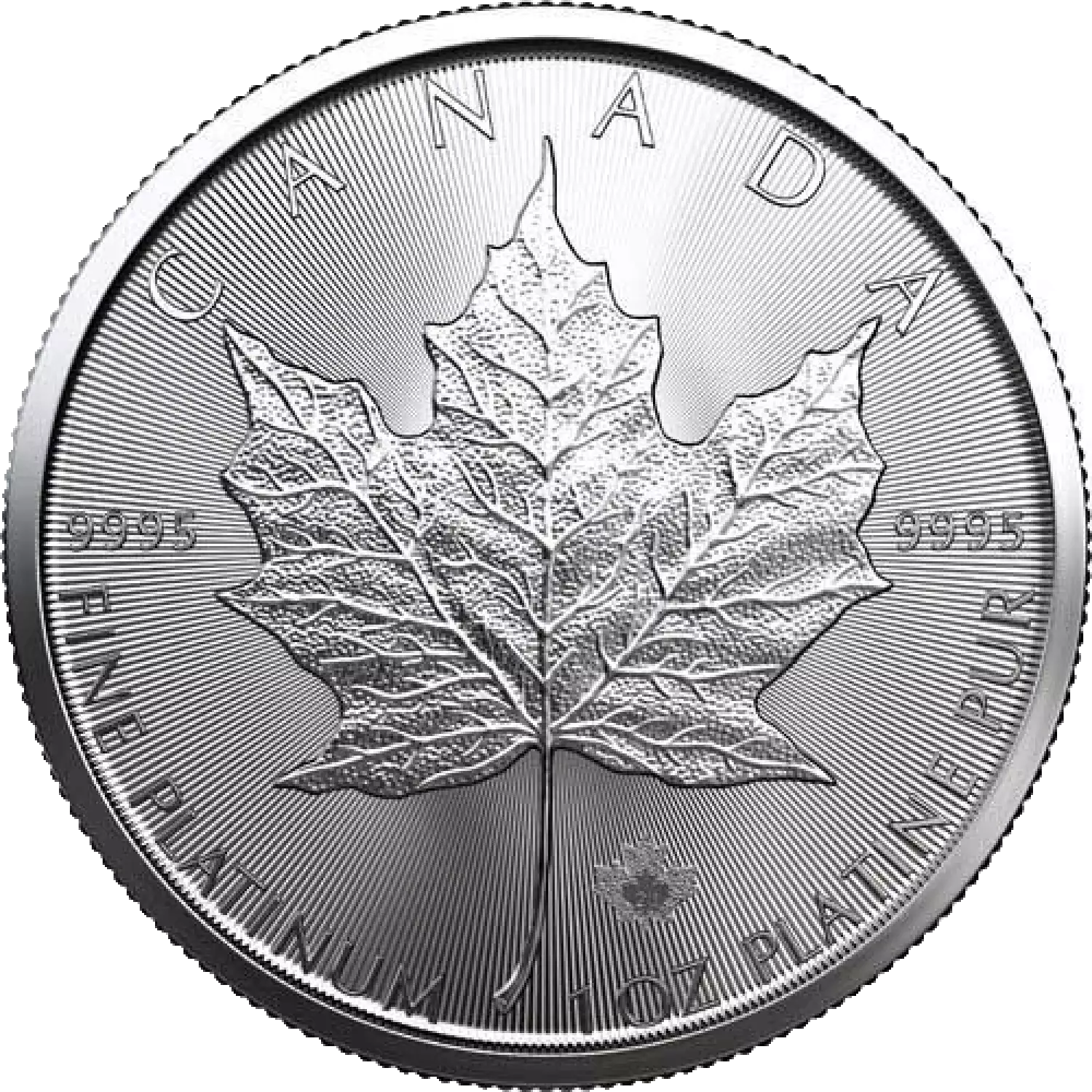 Canadian Platinum Maple Leaf Coins appeal to investors and collectors for their stunning designs and purity. These beautiful coins are minted in a 1 oz weight by the Royal Canadian Mint. The 1 oz Canadian Platinum Maple Leafs are composed of 1 troy ounce of .9995 fine platinum and have a legal tender value of 50 USD.