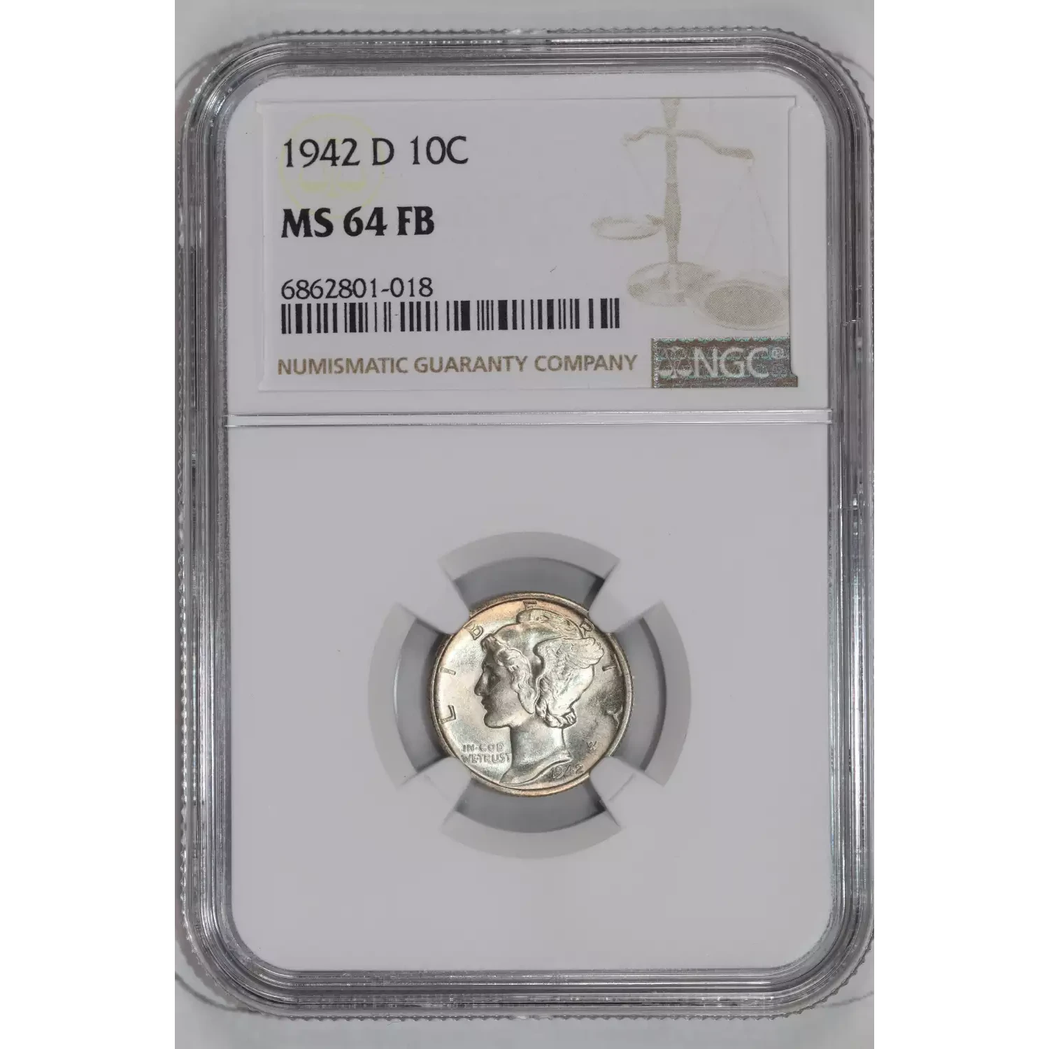 1942-D Dimes Winged Liberty Head or Mercury NGC MS-64