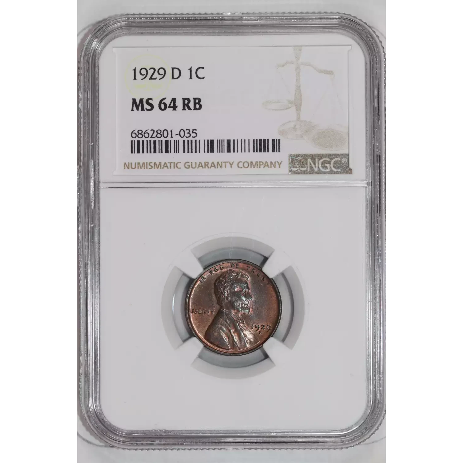1929-D Small Cents Lincoln, Wheat Ears Reverse NGC MS-64