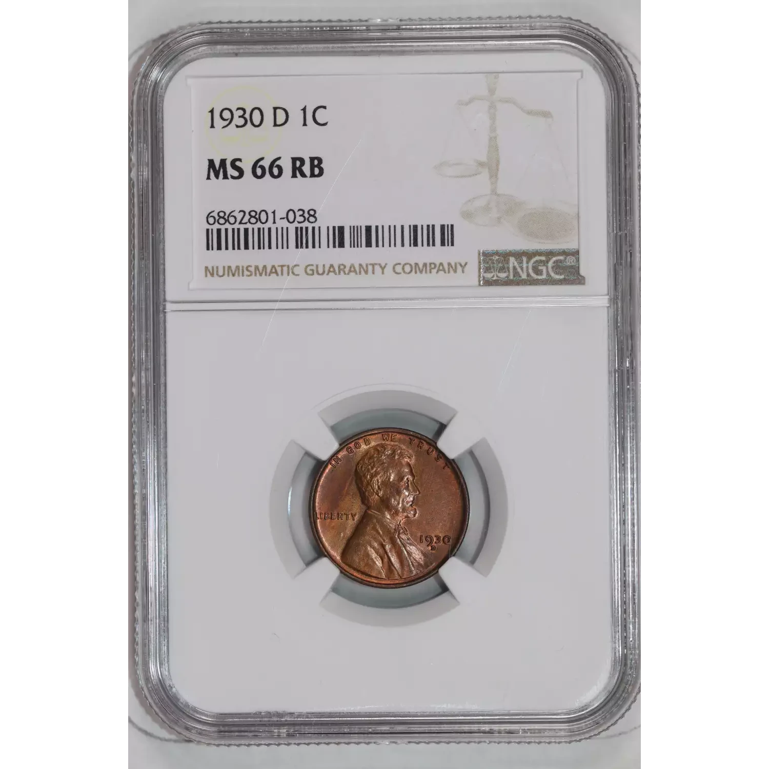 1930-D Small Cents Lincoln, Wheat Ears Reverse NGC MS-66