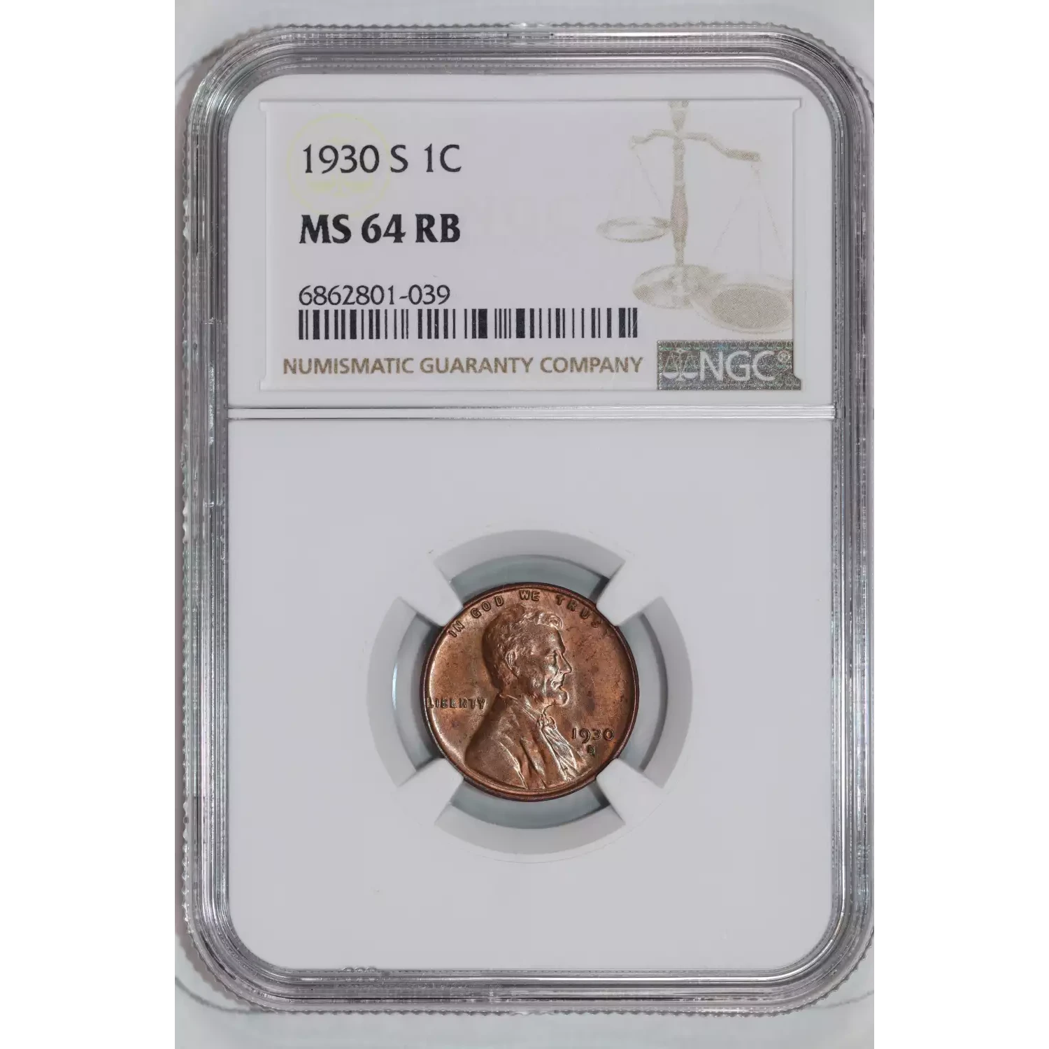 1930-S Small Cents Lincoln, Wheat Ears Reverse NGC MS-64