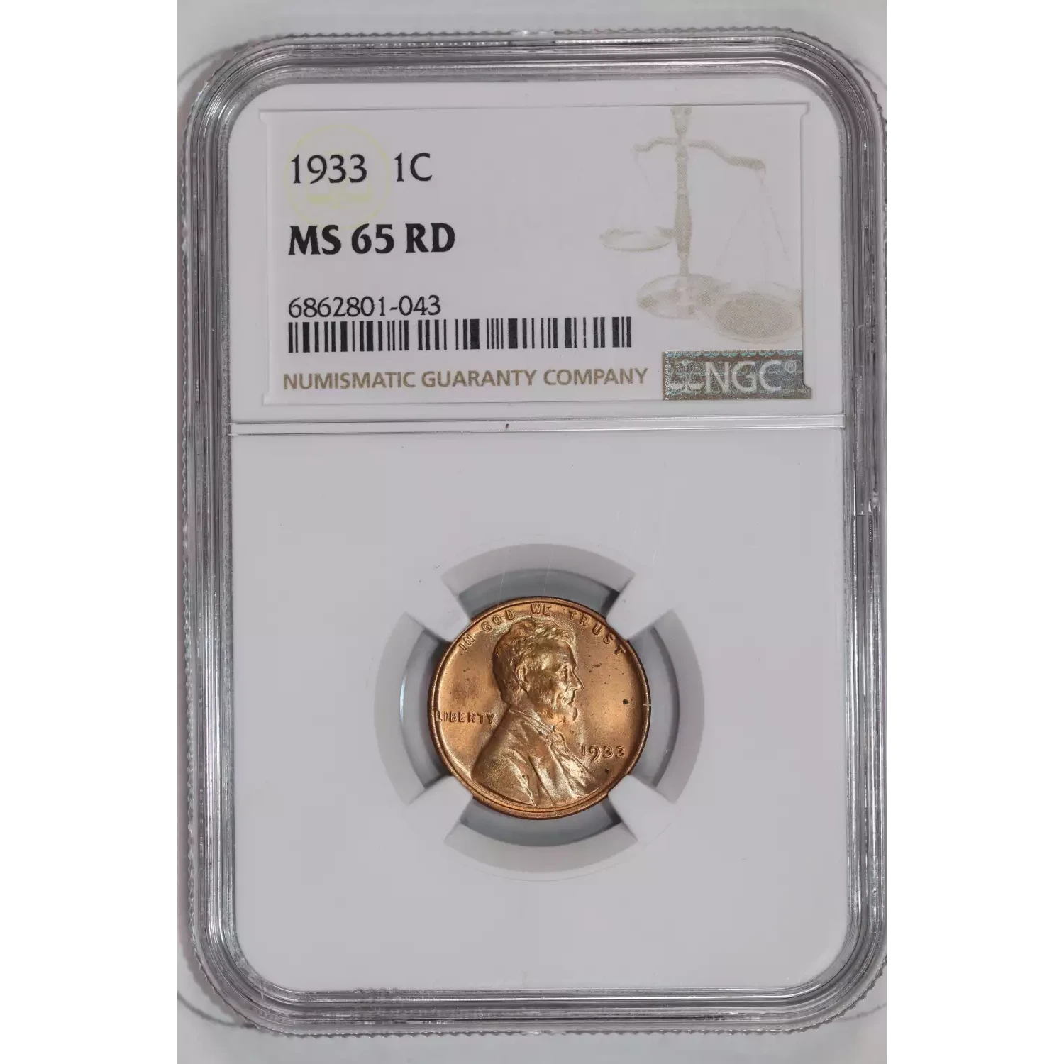 1933 Small Cents Lincoln, Wheat Ears Reverse NGC MS-65