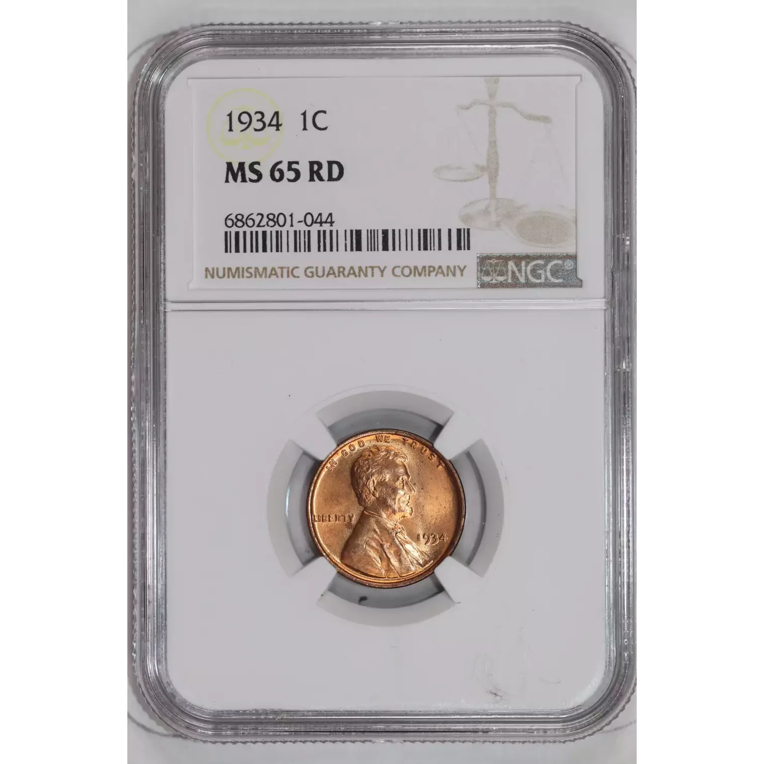 1934 Small Cents Lincoln, Wheat Ears Reverse NGC MS-65