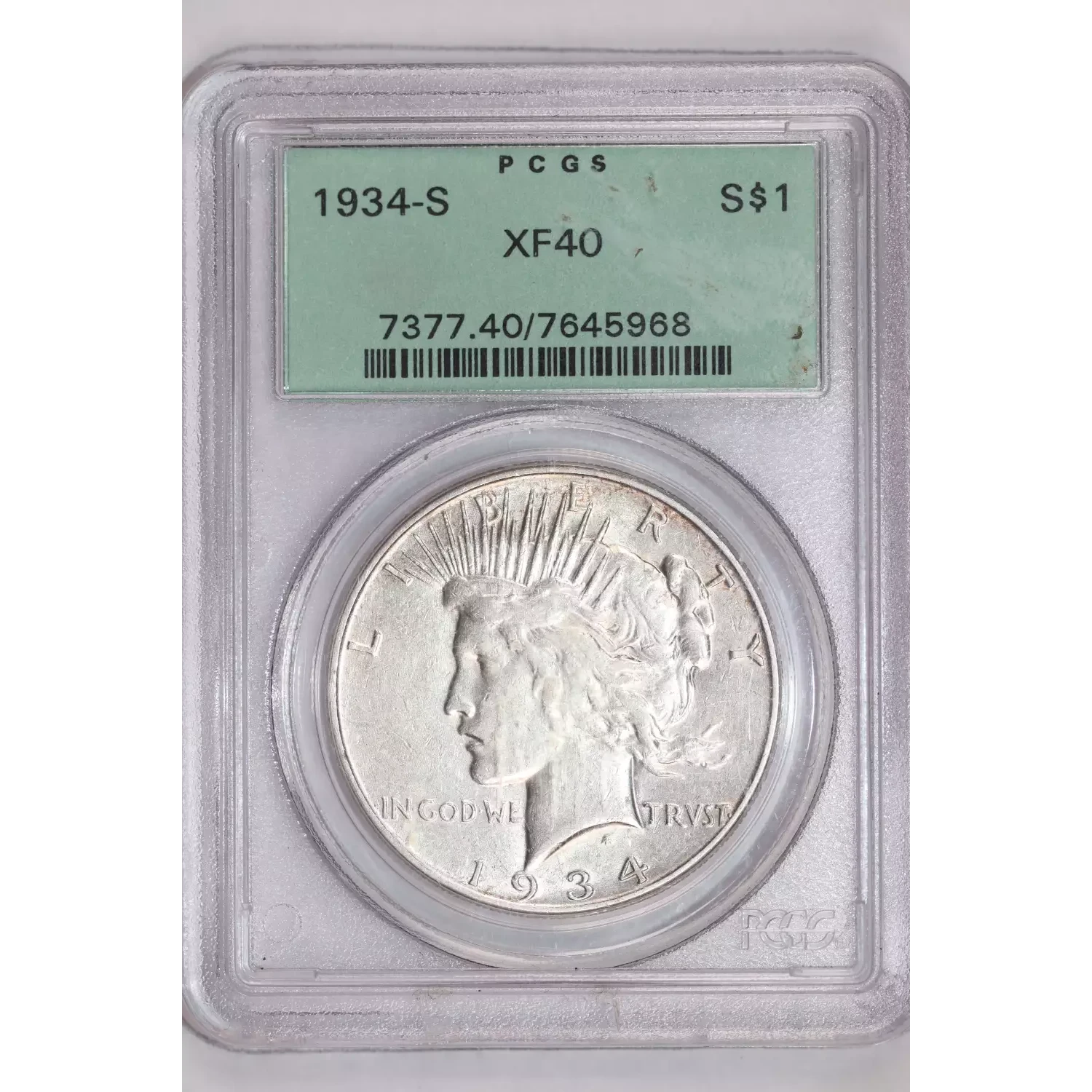 1934-S PEACE DOLLAR PCGS XF40 OGH