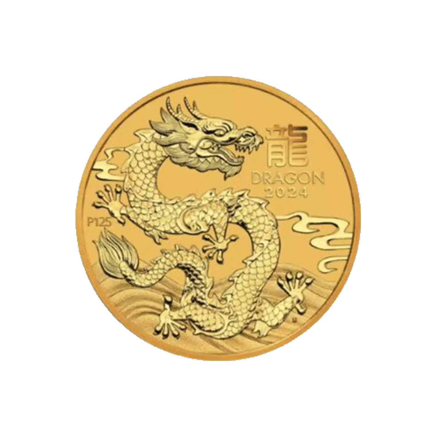 Buy the magnificent 2024 1/20 oz Australian Perth Mint Gold Lunar III: Year of the Dragon from us online! You can check and compare our reputation and gold prices with other gold coin dealers and see how we stand out in the industry. The gold price is updated on our website every minute.