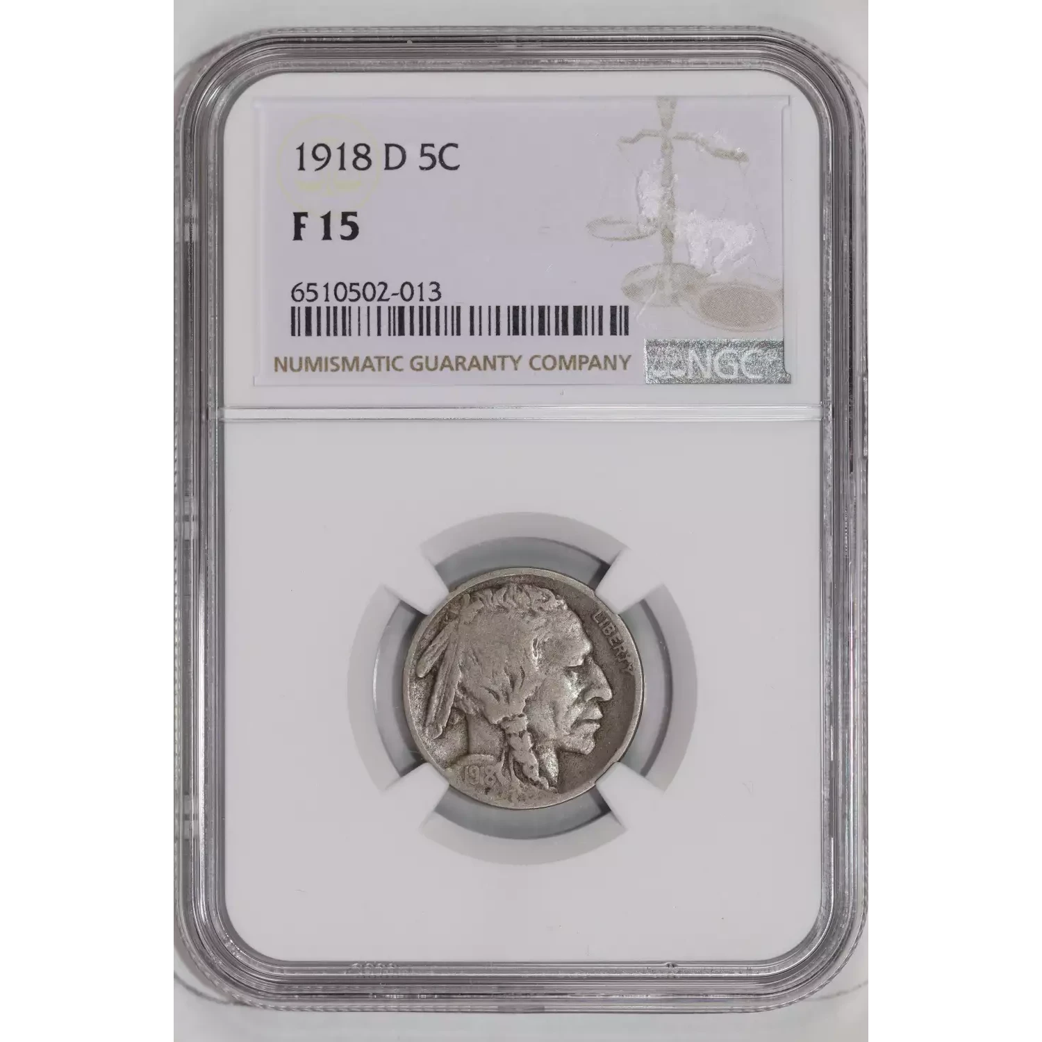 1918-D Nickel Indian Head or Buffalo NGC F-15