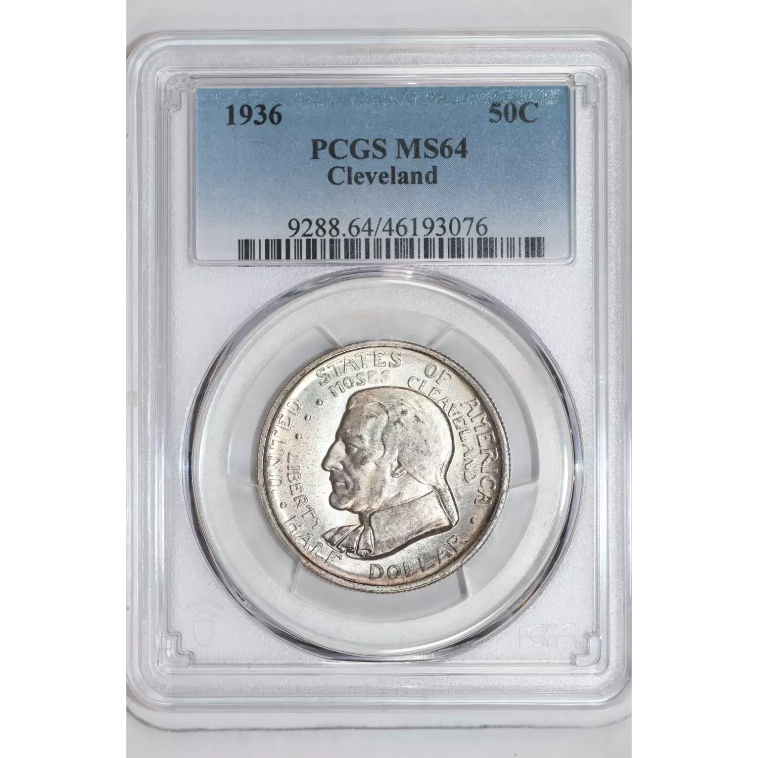 1936 CLEVELAND SILVER COMMEMORATIVE HALF DOLLAR PCGS MS64