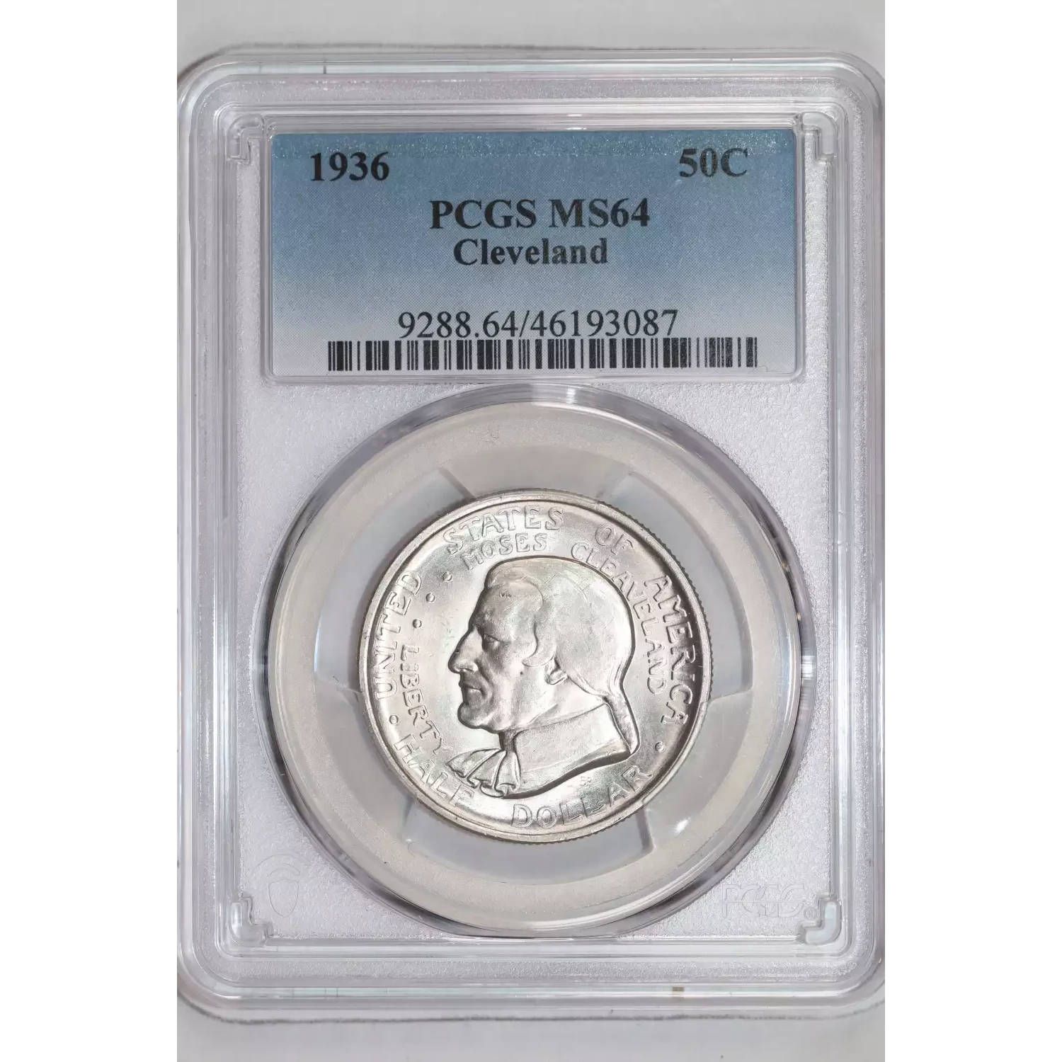 1936 CLEVELAND SILVER COMMEMORATIVE HALF DOLLAR PCGS MS64