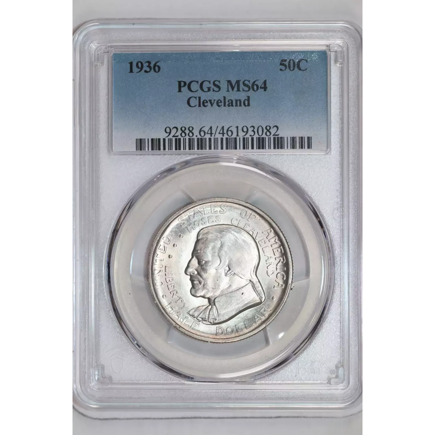 1936 CLEVELAND SILVER COMMEMORATIVE HALF DOLLAR PCGS MS64