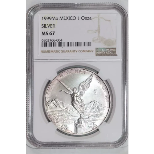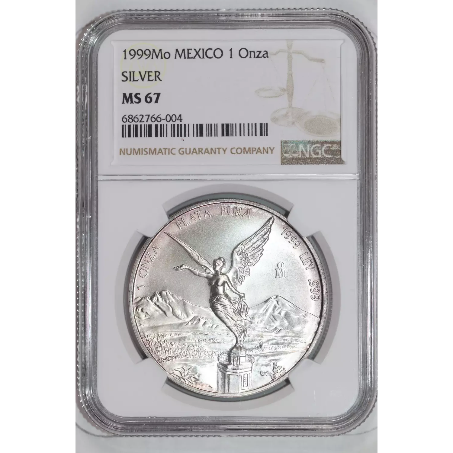 1999 MEXICO Silver ONZA (Troy Ounce of Silver) NGC MS-67 Mo SILVER