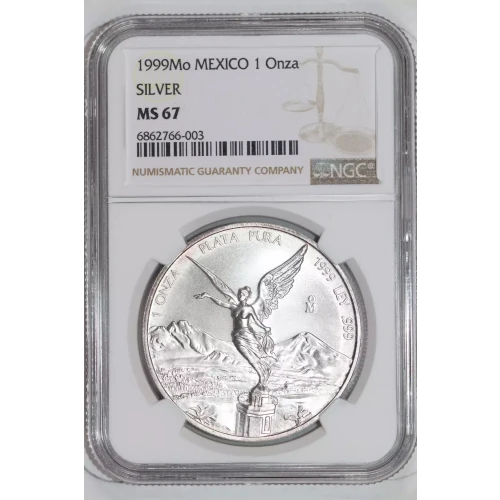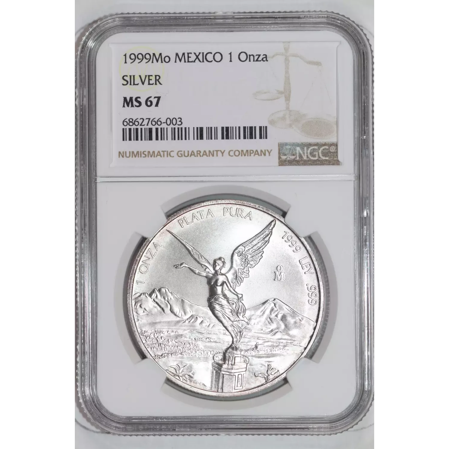 1999 MEXICO Silver ONZA (Troy Ounce of Silver) NGC MS-67 Mo SILVER