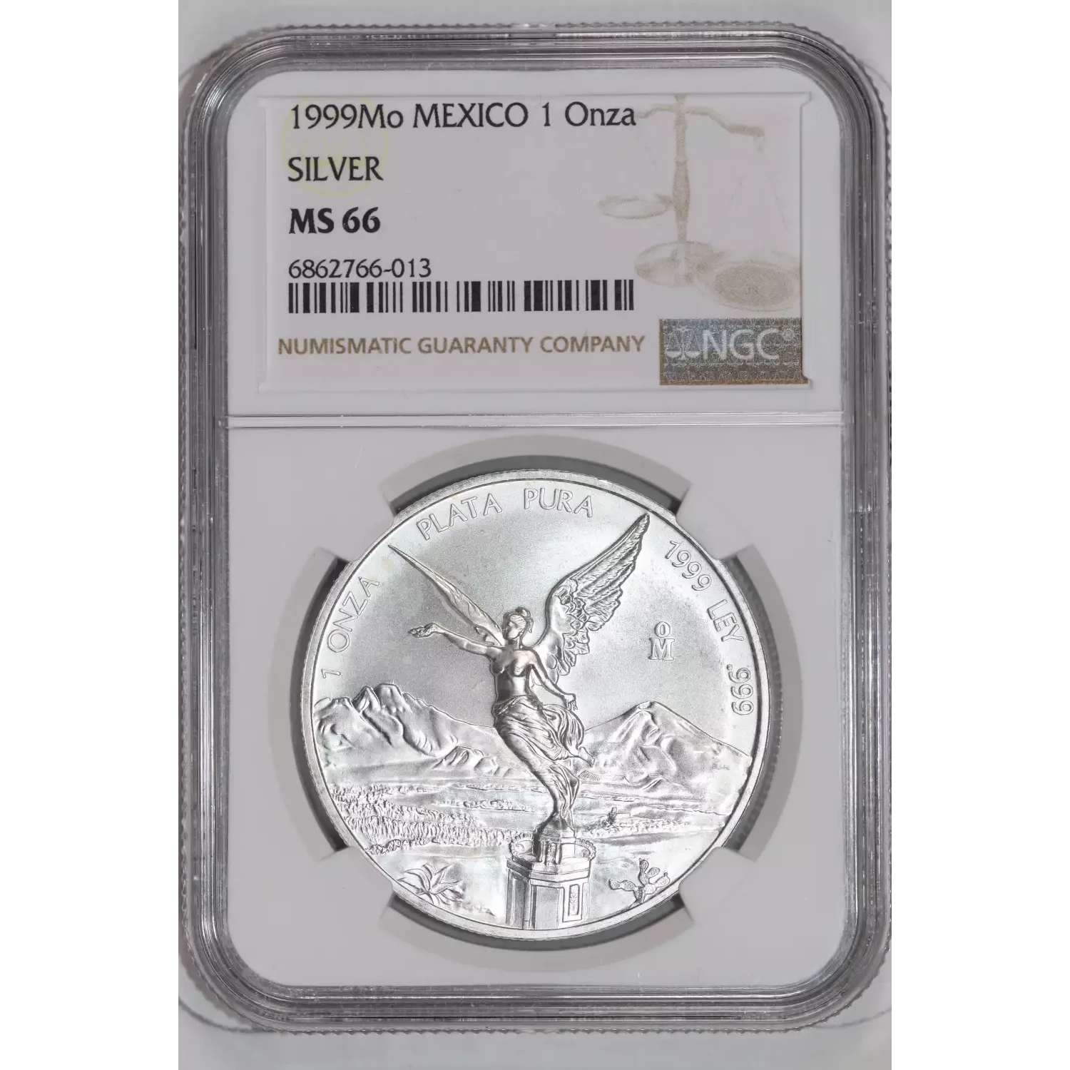 1999 MEXICO Silver ONZA (Troy Ounce of Silver) NGC MS-66 Mo SILVER