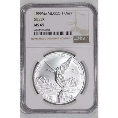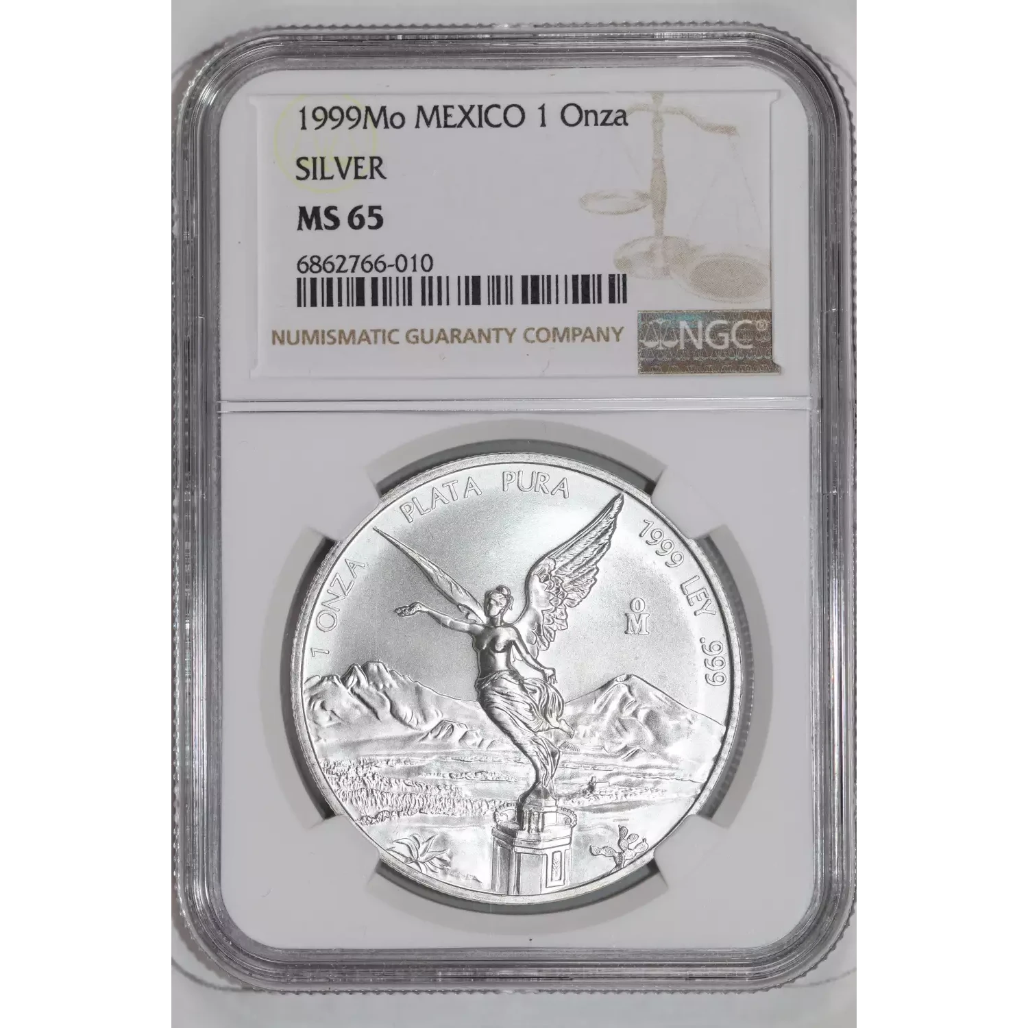 1999 MEXICO Silver ONZA (Troy Ounce of Silver) NGC MS-65 Mo SILVER