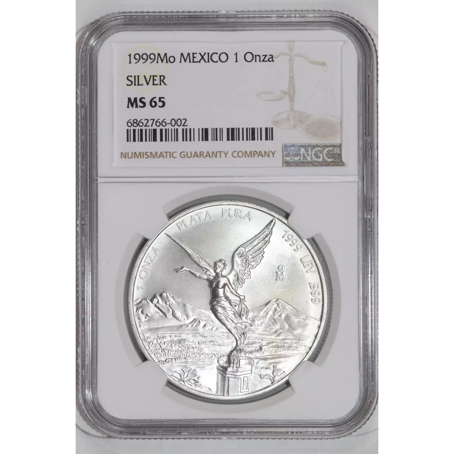 1999 MEXICO Silver ONZA (Troy Ounce of Silver) NGC MS-65 Mo SILVER