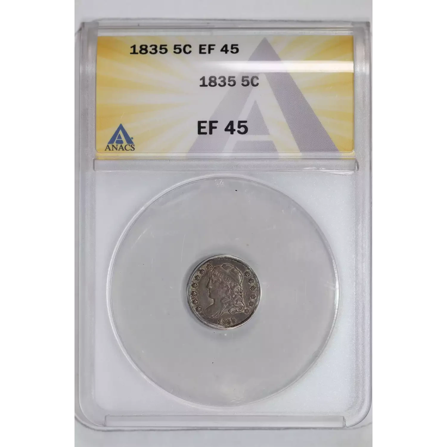 1835 LARGE DATE CAPPED BUST HALF DIME ANACS XF45