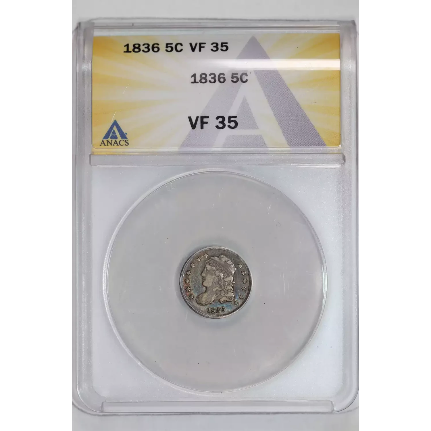 1836 SMALL 5 CAPPED BUST HALF DIME ANACS VF35