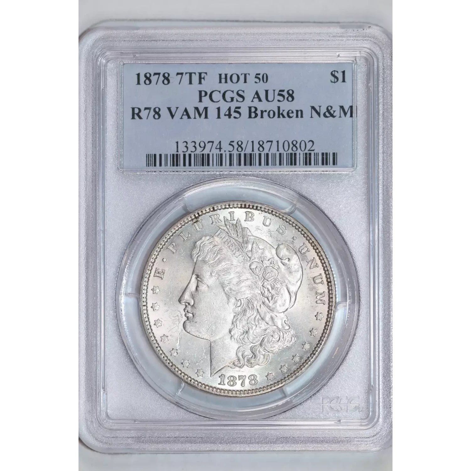 1878 7TF REVERSE 1878 VAM-145 BROKEN N&M MORGAN DOLLAR PCGS AU58
