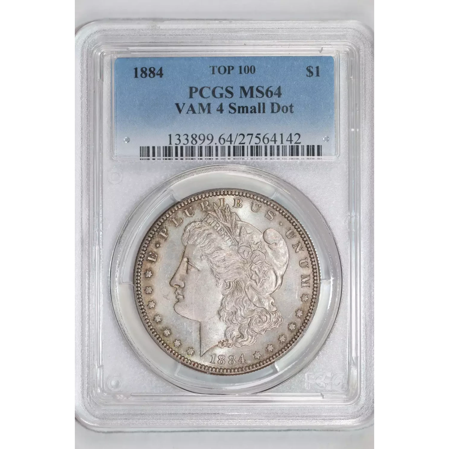 1884 VAM-4 "SMALL DOT" TOP 100 MORGAN DOLLAR PCGS MS64