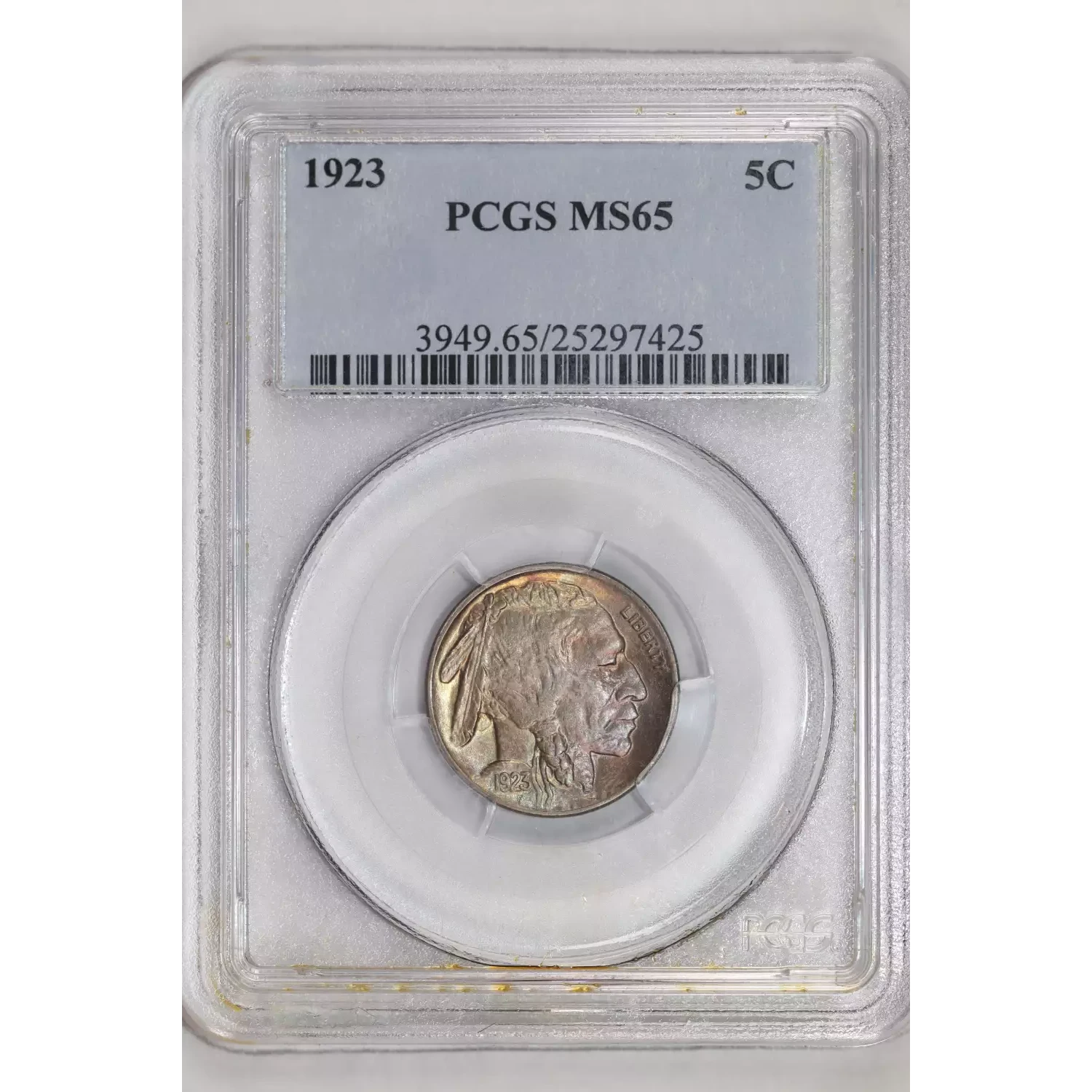 1923 BUFFALO NICKEL PCGS MS65 - PQ, RAINBOW TONING!