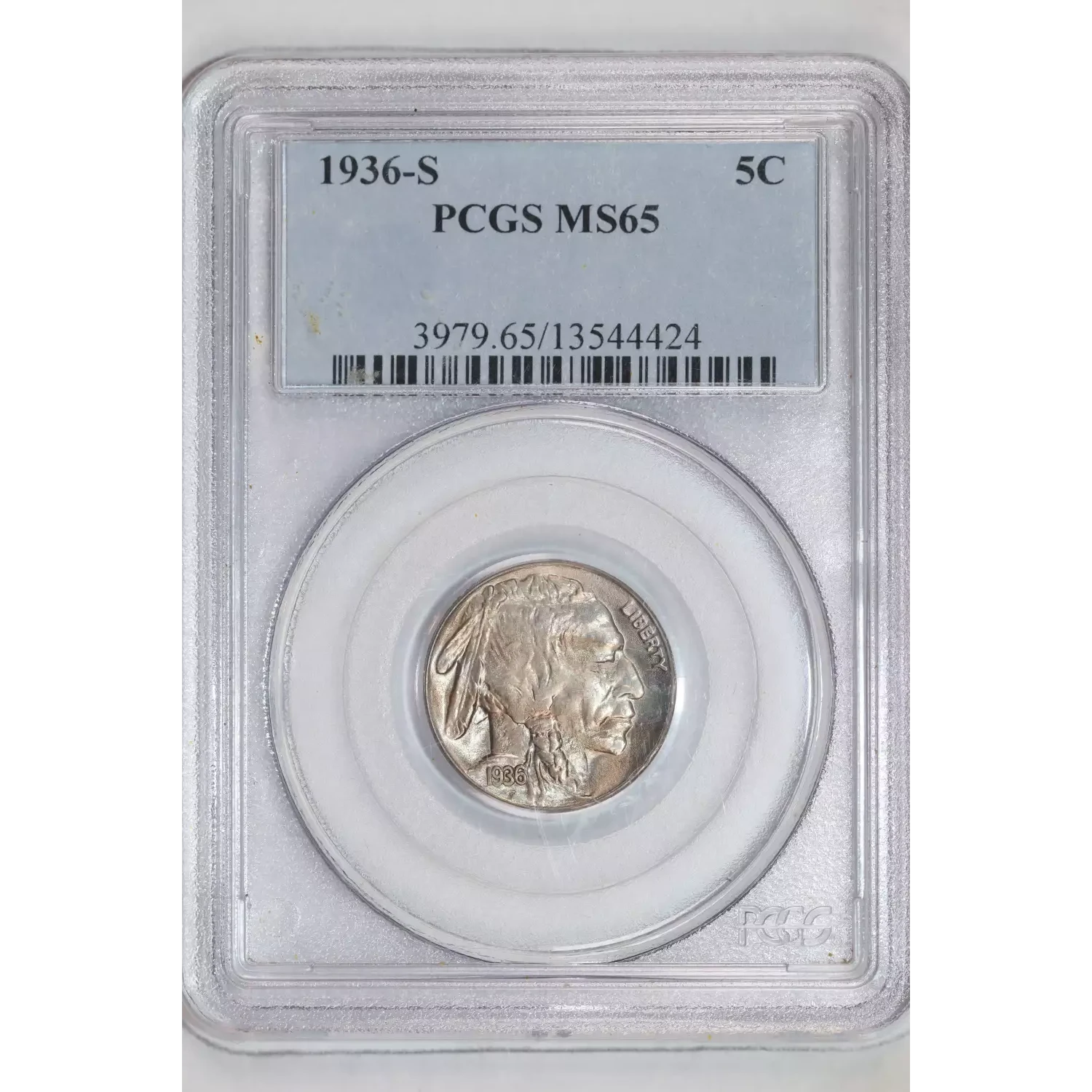 1936-S Nickel Indian Head or Buffalo PCGS MS-65