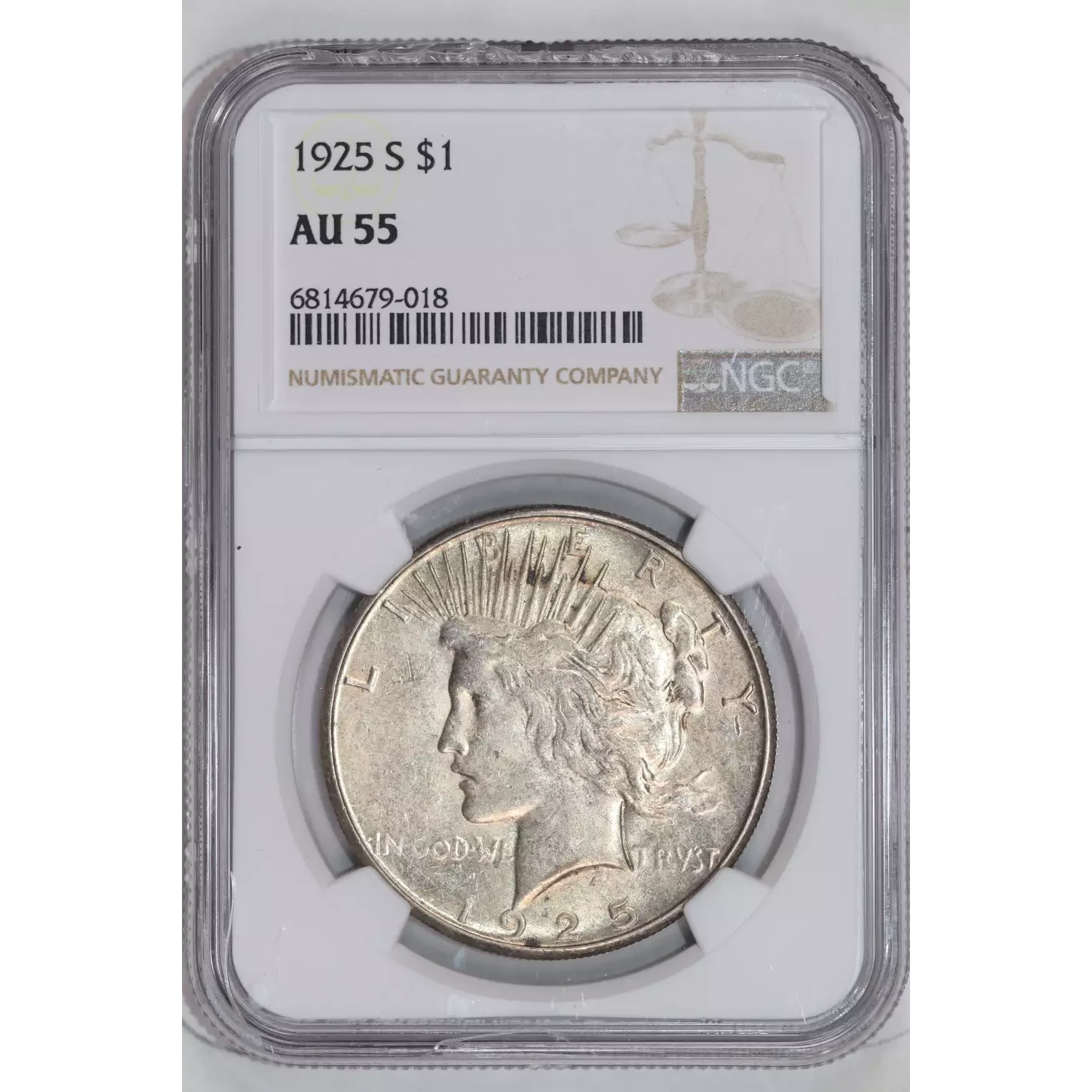 1925-S PEACE DOLLAR NGC AU55 - CHIPPED SLAB*