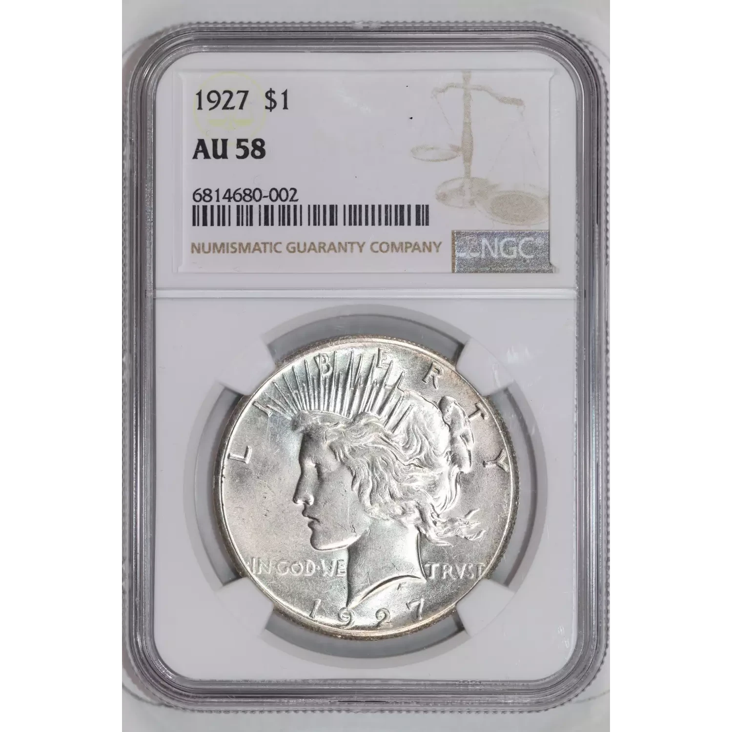 1927 PEACE DOLLAR NGC AU58
