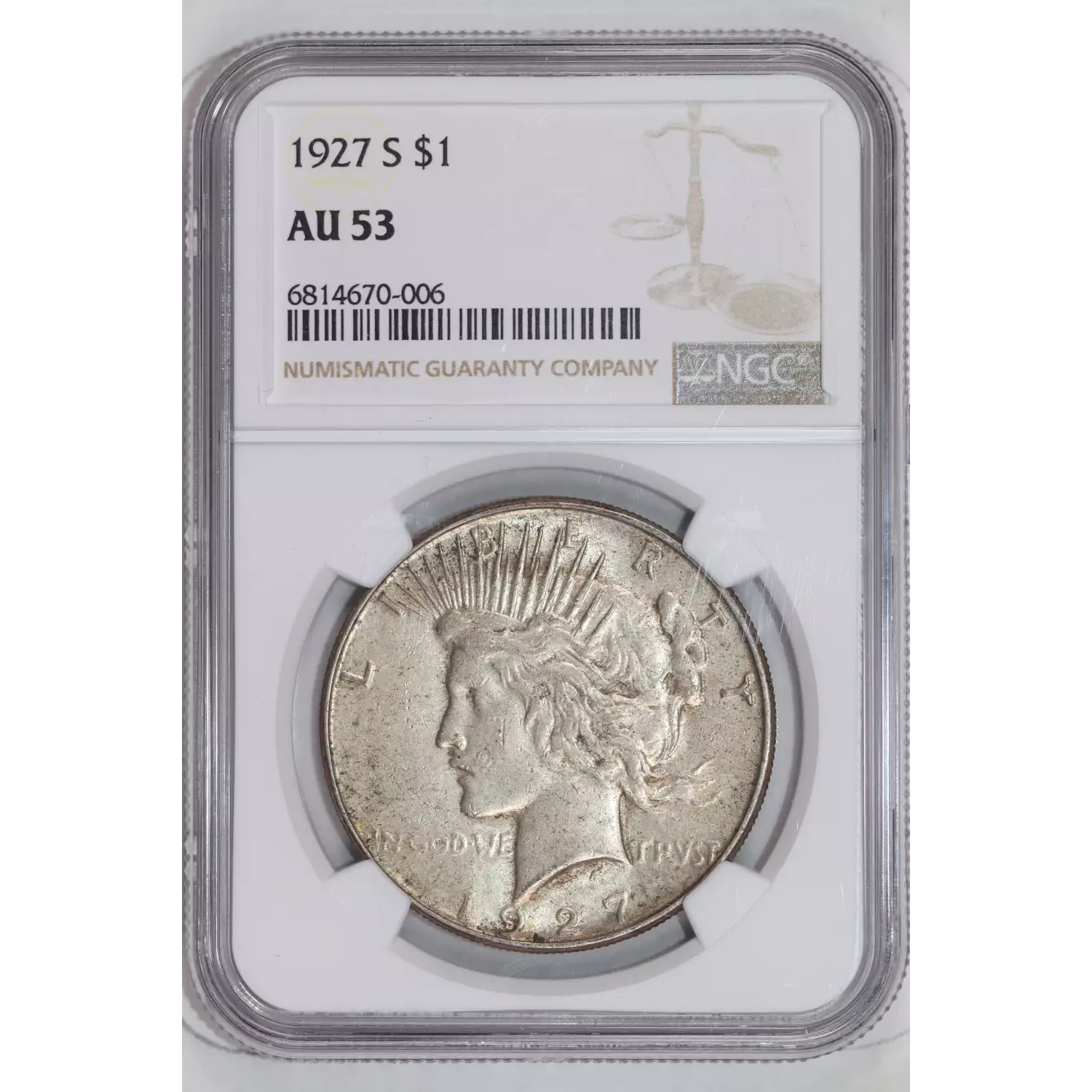 1927-S PEACE DOLLAR NGC AU53