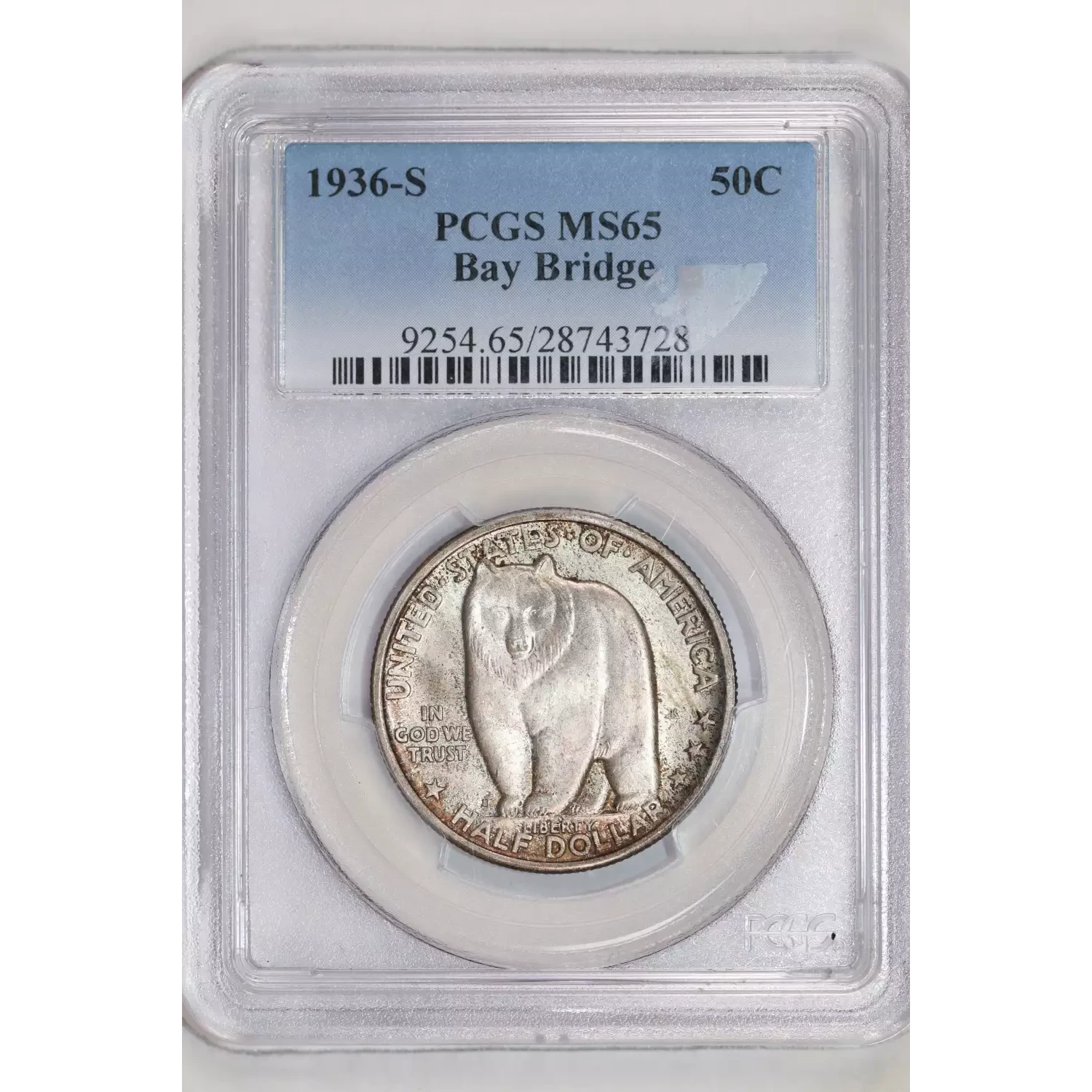 1936-S BAY BRIDGE SILVER COMMEMORATIVE HALF DOLLAR PCGS MS65