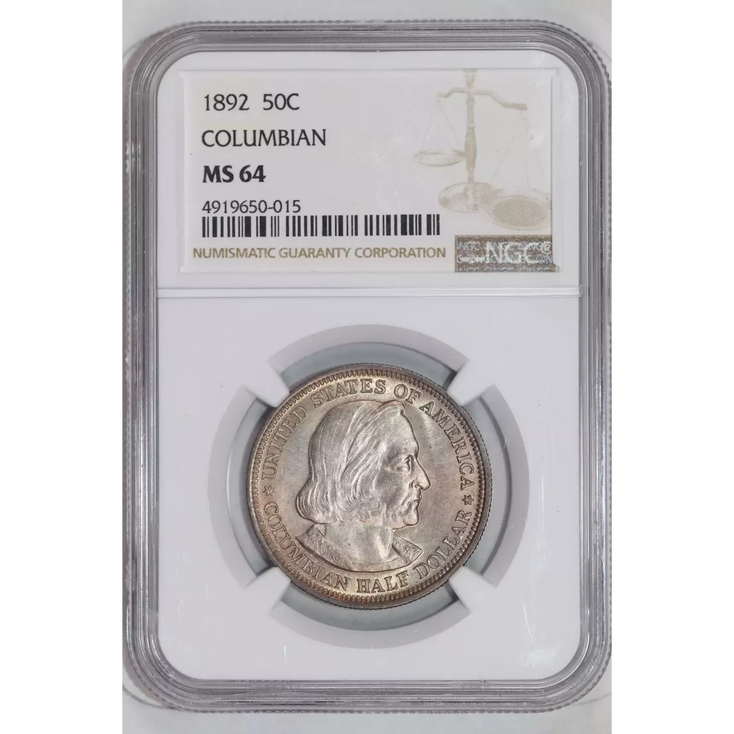 1892 COLUMBIAN SILVER COMMEMORATIVE HALF DOLLAR NGC MS64